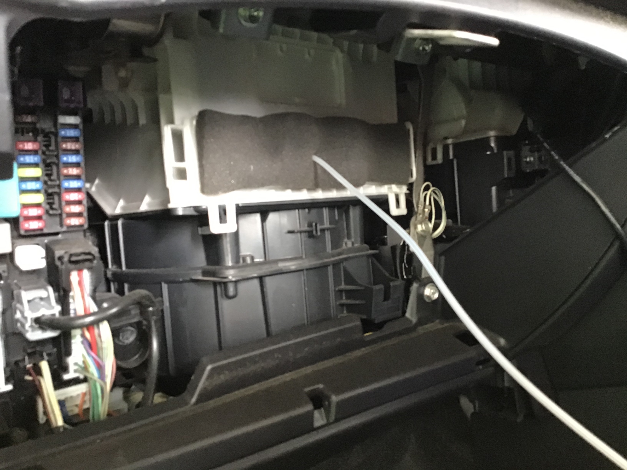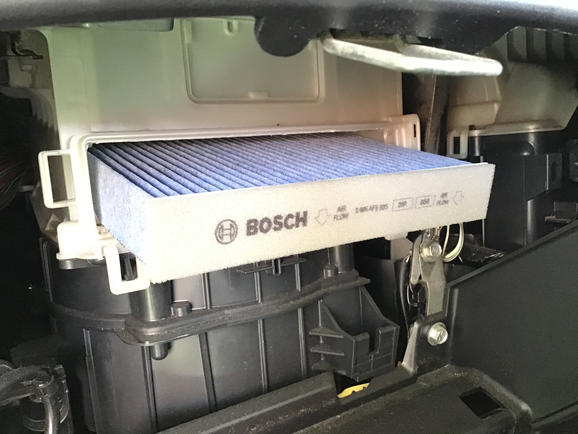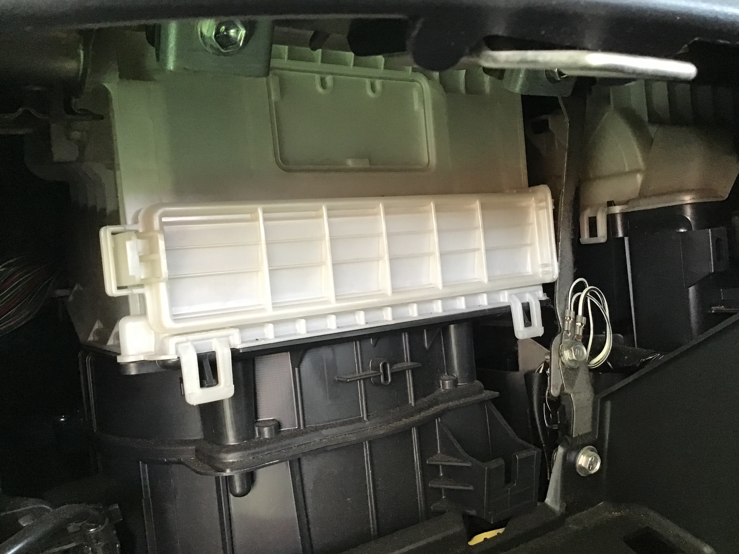 新しいエアコンフィルターを格納スペースに差し込んだら