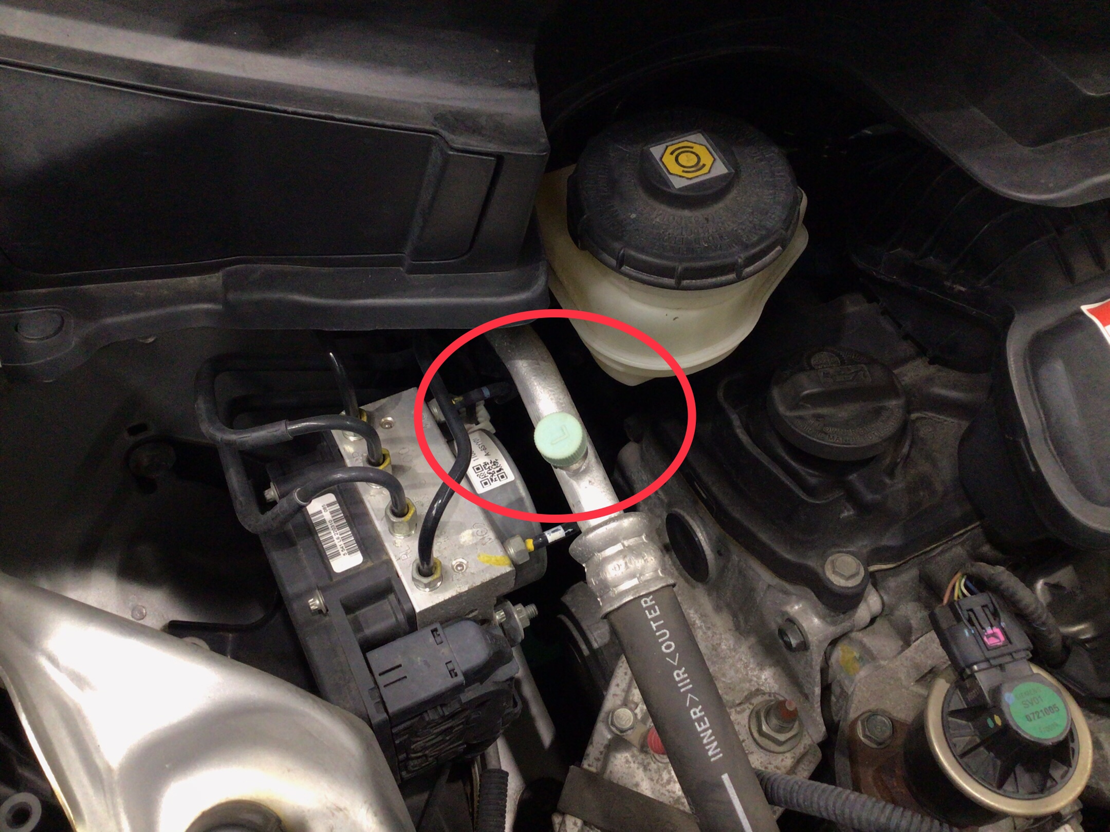 ボンネット開けて下の画像の赤丸の所から注入します♪