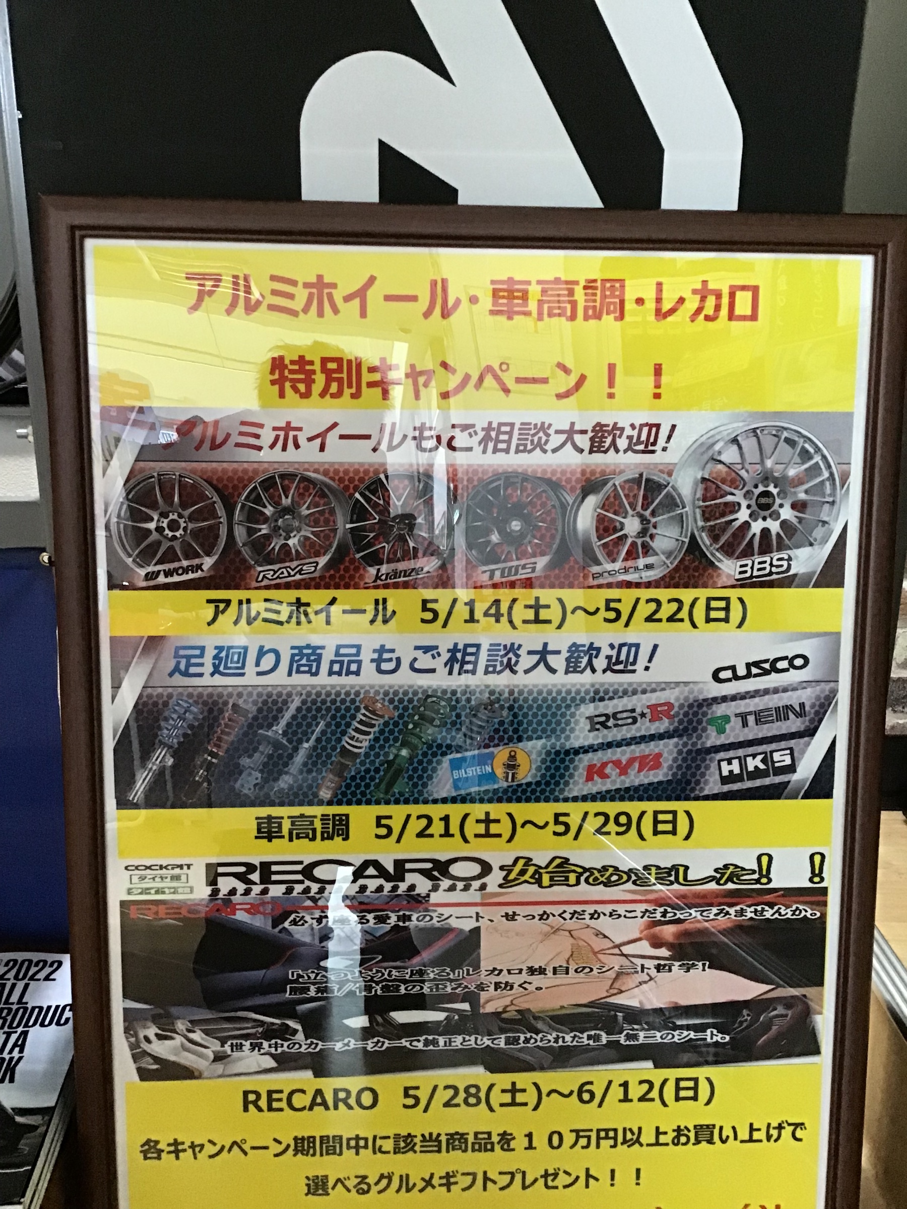 アルミホイール・車高調・レカロキャンペーン開催中!!