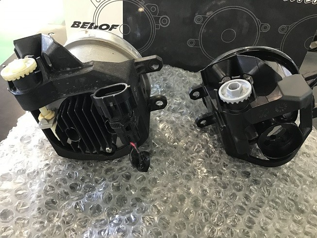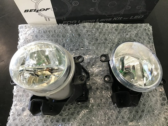 左が純正フォグで右がBELLOFのレンズキット。形状は全く同じなので完全ボルトオンです。