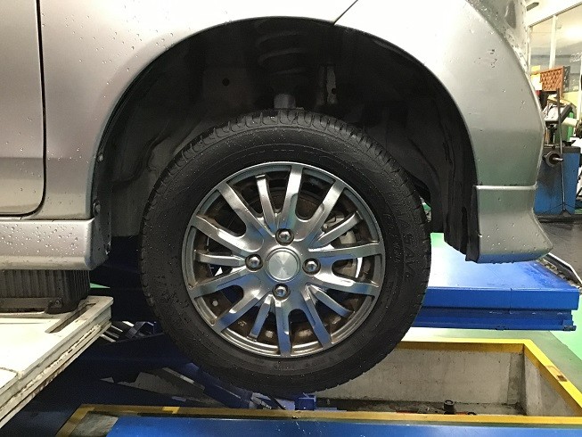 来店時の装着ホイールは13インチ。ボディーデザインと比べて少し小さめなホイールな感じをカッコよくしちゃいたいとご相談。2インチほどインチアップしちゃおうとご成約頂きました。