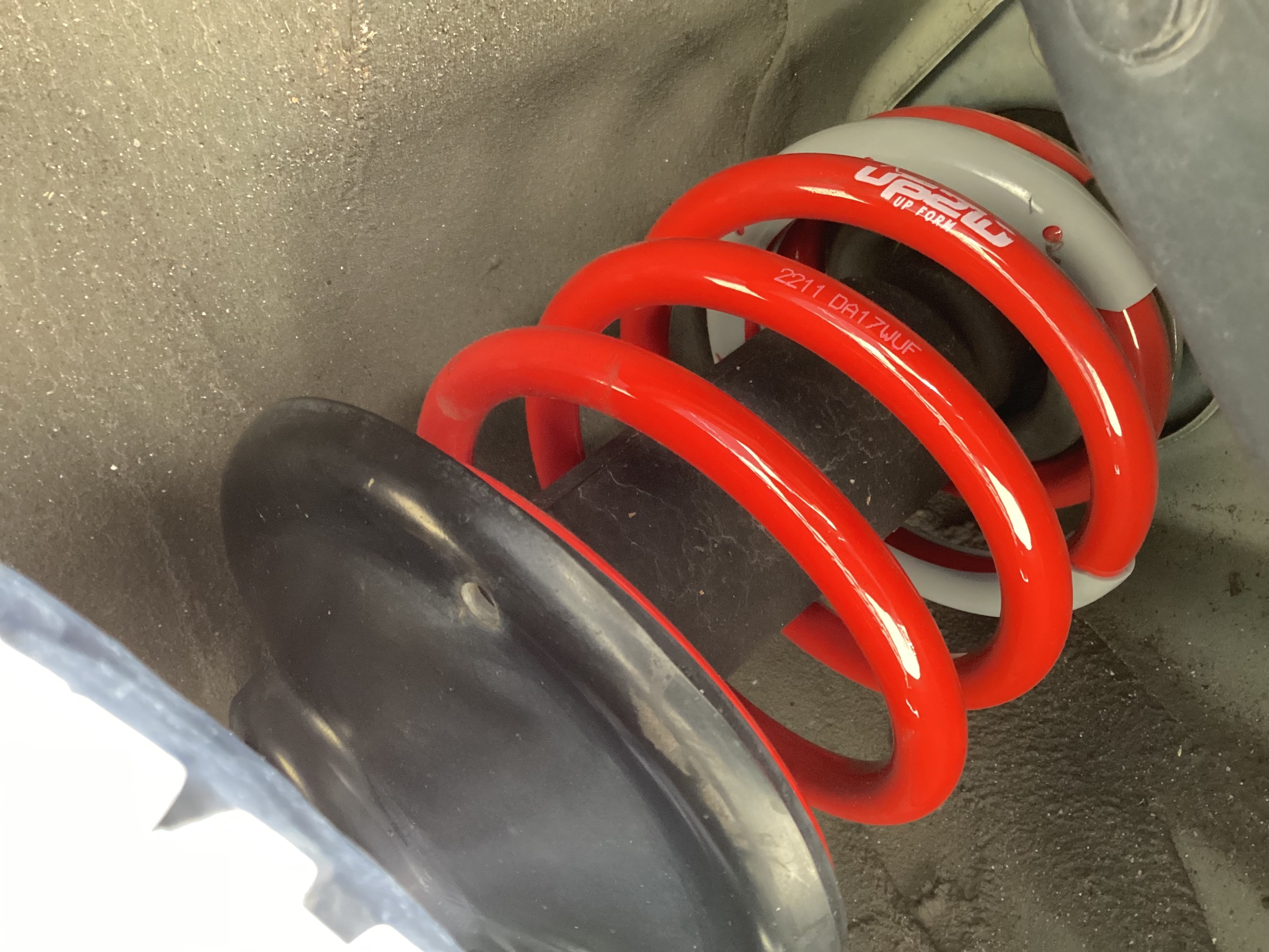 純正のサスを タナベ UP 210 の アップサスに交換いたします