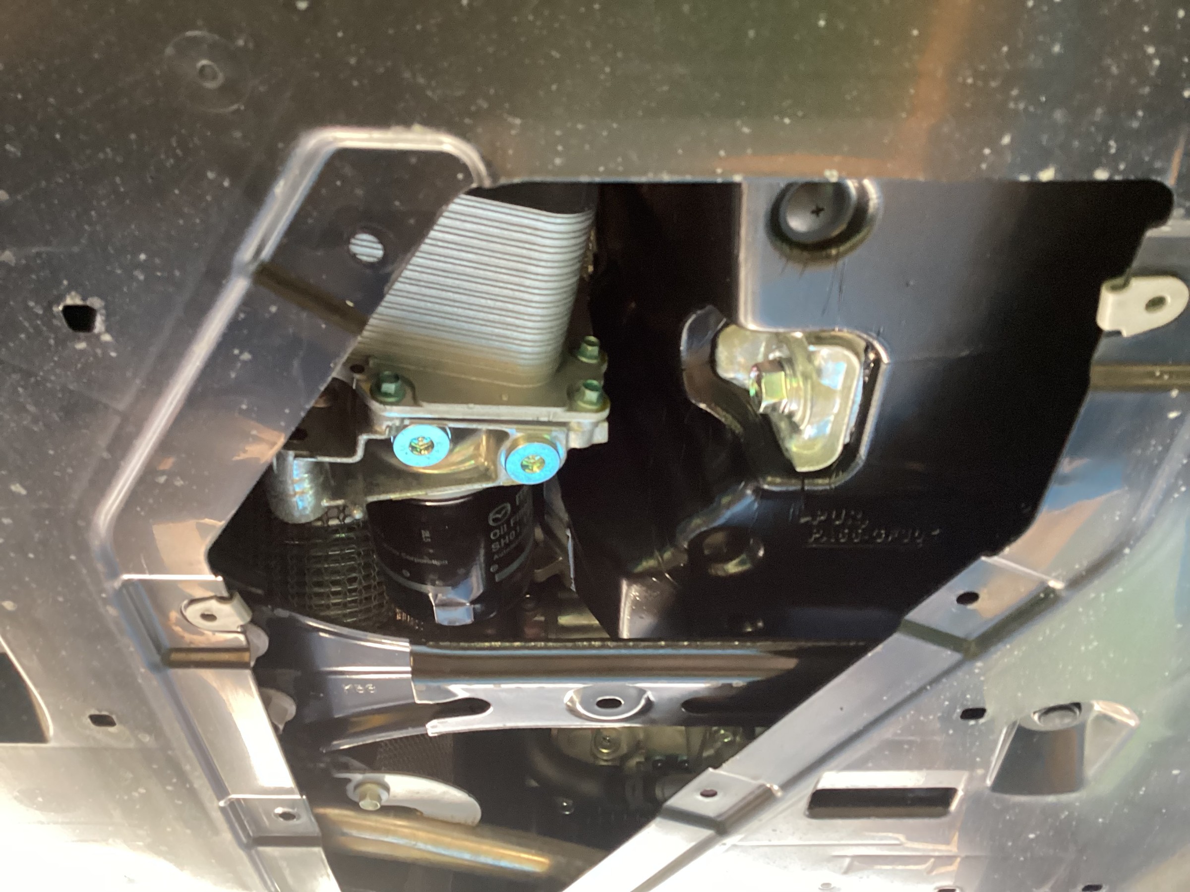 アンダーカバーの一部を外せば、エンジンオイルのドレンボルトとエレメントにアクセスできます。