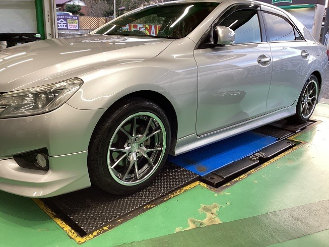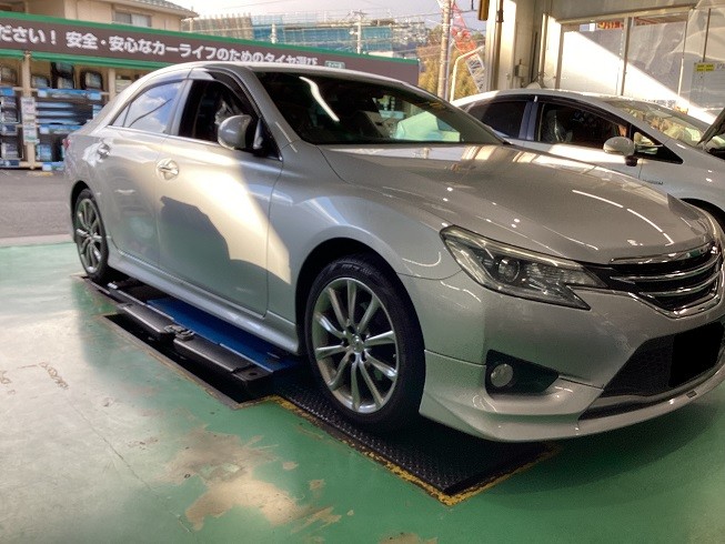 交換にご来店頂きましたマークXのお客様。タイヤサイズは変更せずにホイールをドレスアップしたいとのご希望で、リムもしっかりとありつつキラッとしたのが欲しいとのご要望でした。