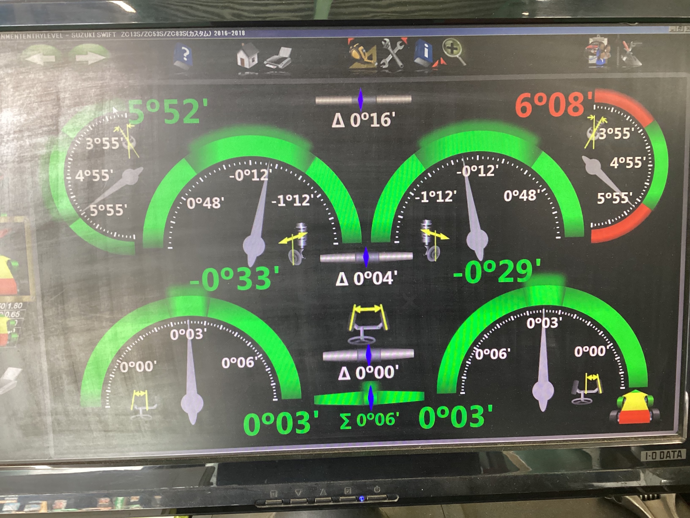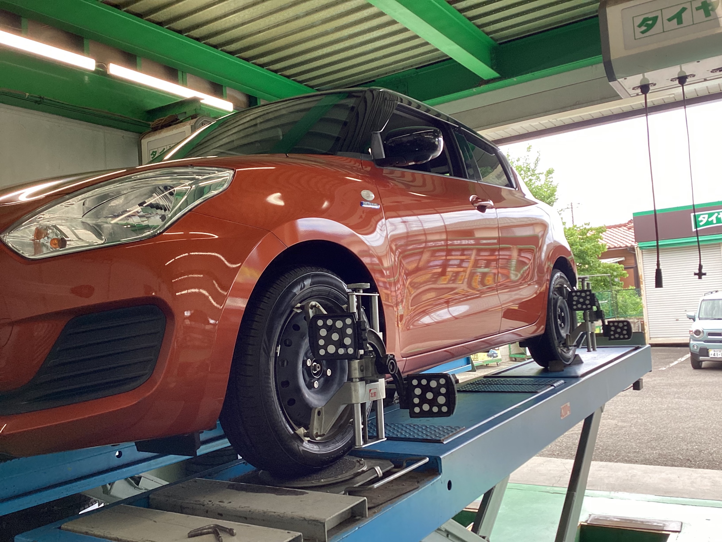 前回タイヤ交換させていただいた記事を載せたスイフトのお客様ですが一緒にアライメント調整もさせて頂きました(#^.^#)