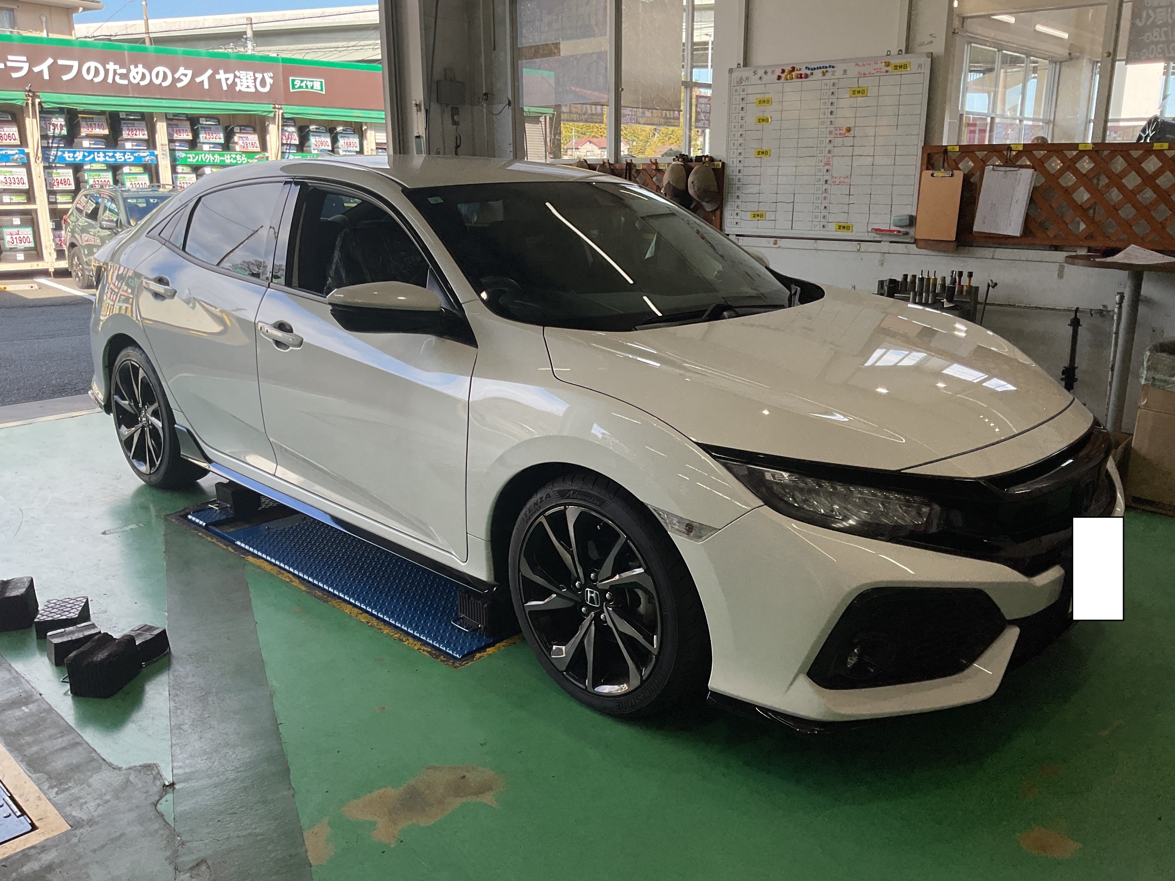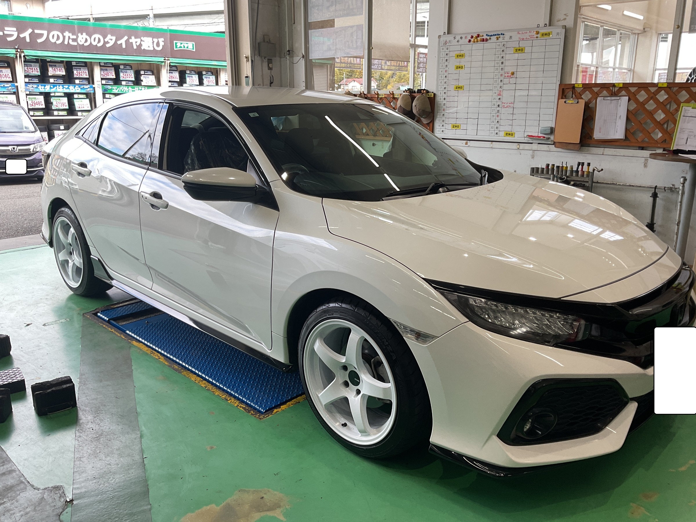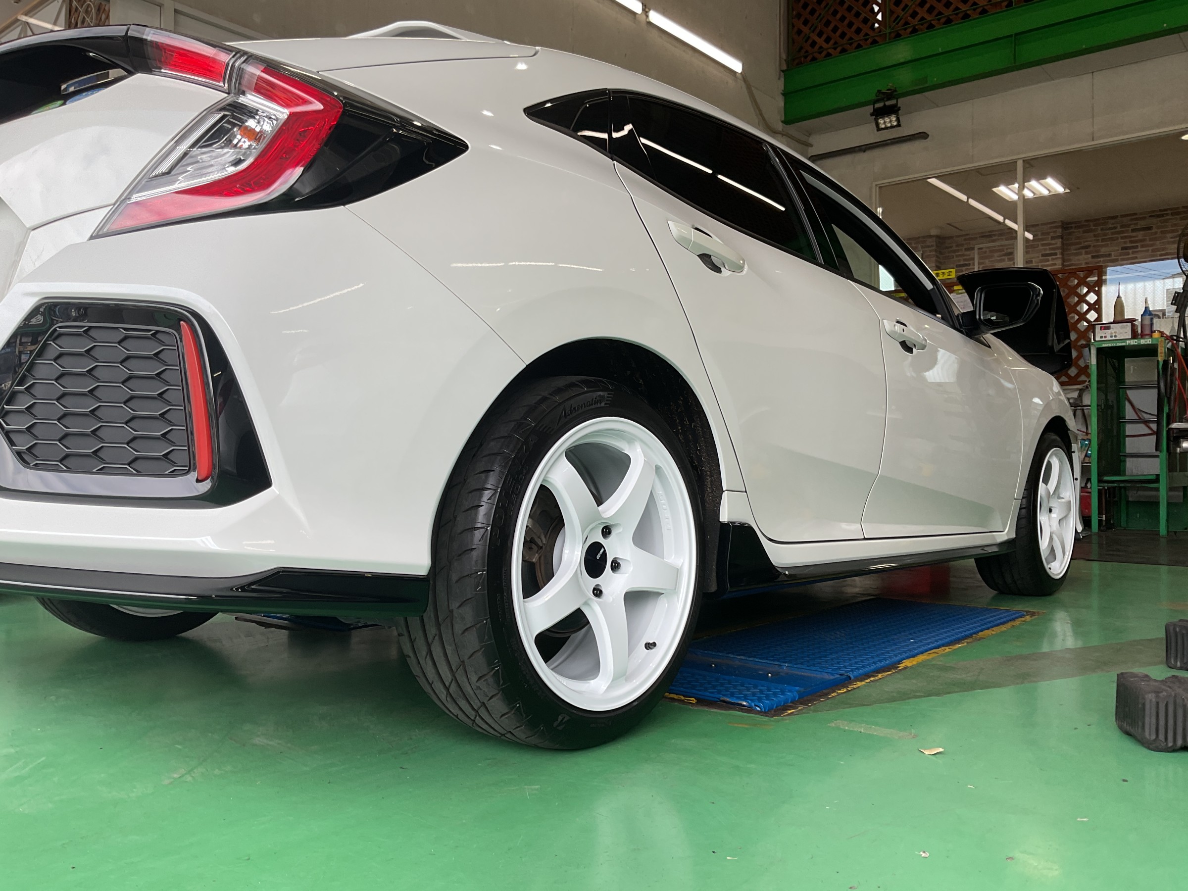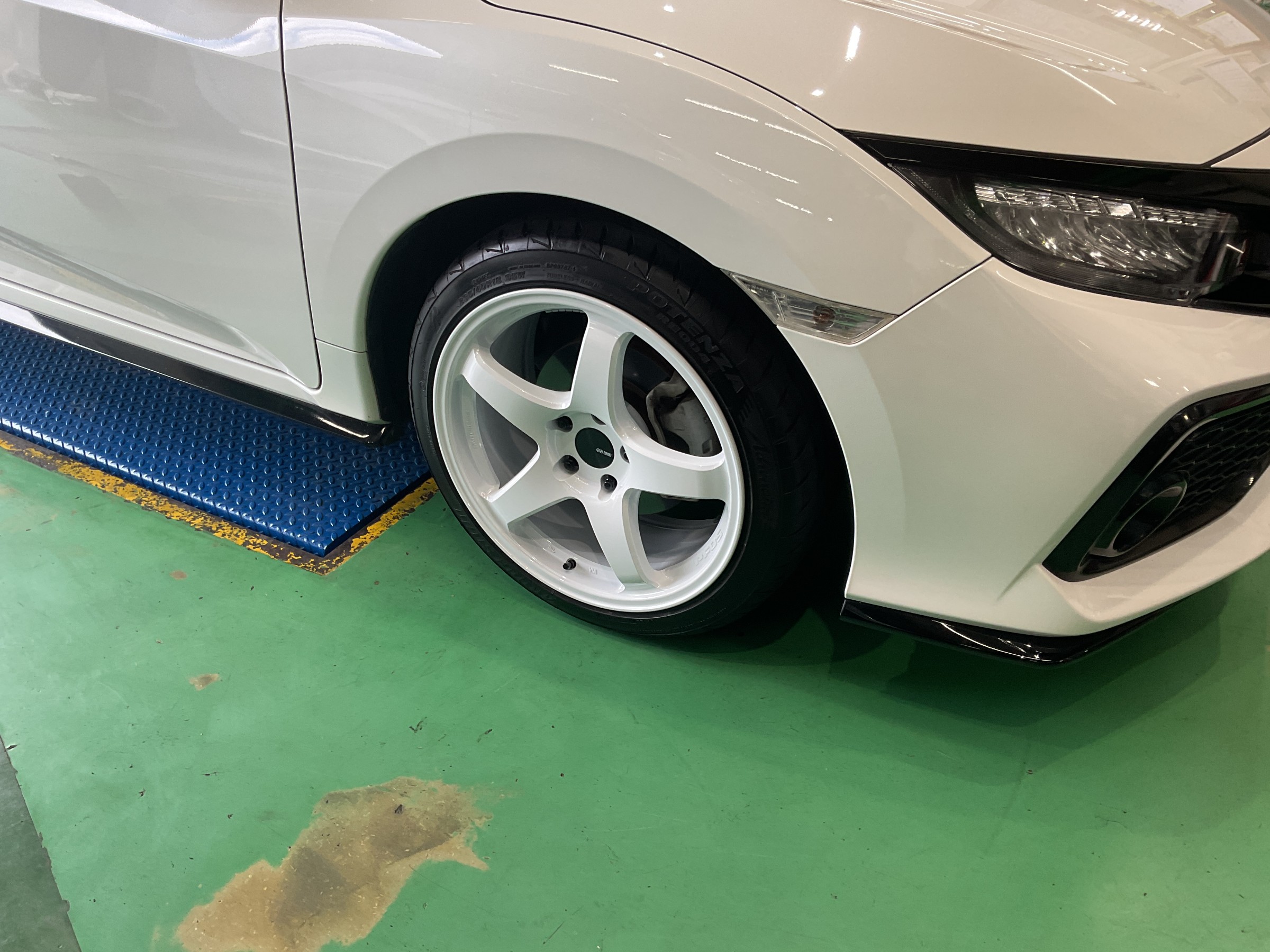 ホワイトボディのシビックさん。オーナー様がホワイトのボディカラーがお好きでこのお車を購入されました。