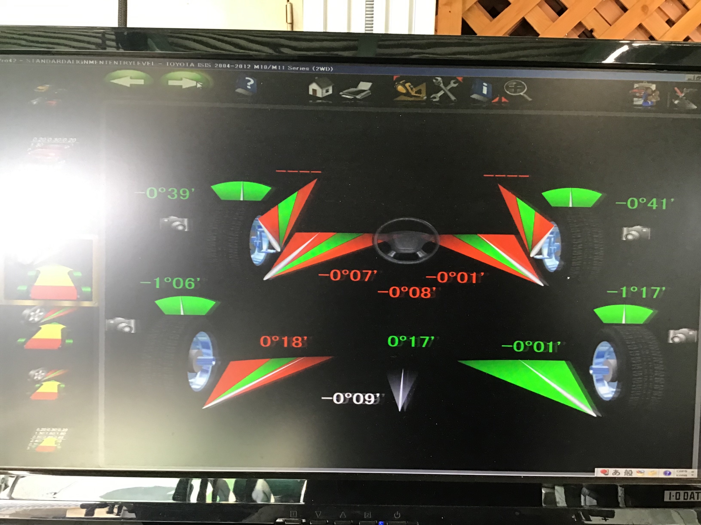 タイヤ交換後にはアライメント調整!今回のお車もズレがあったのでしっかり調整(^^)/