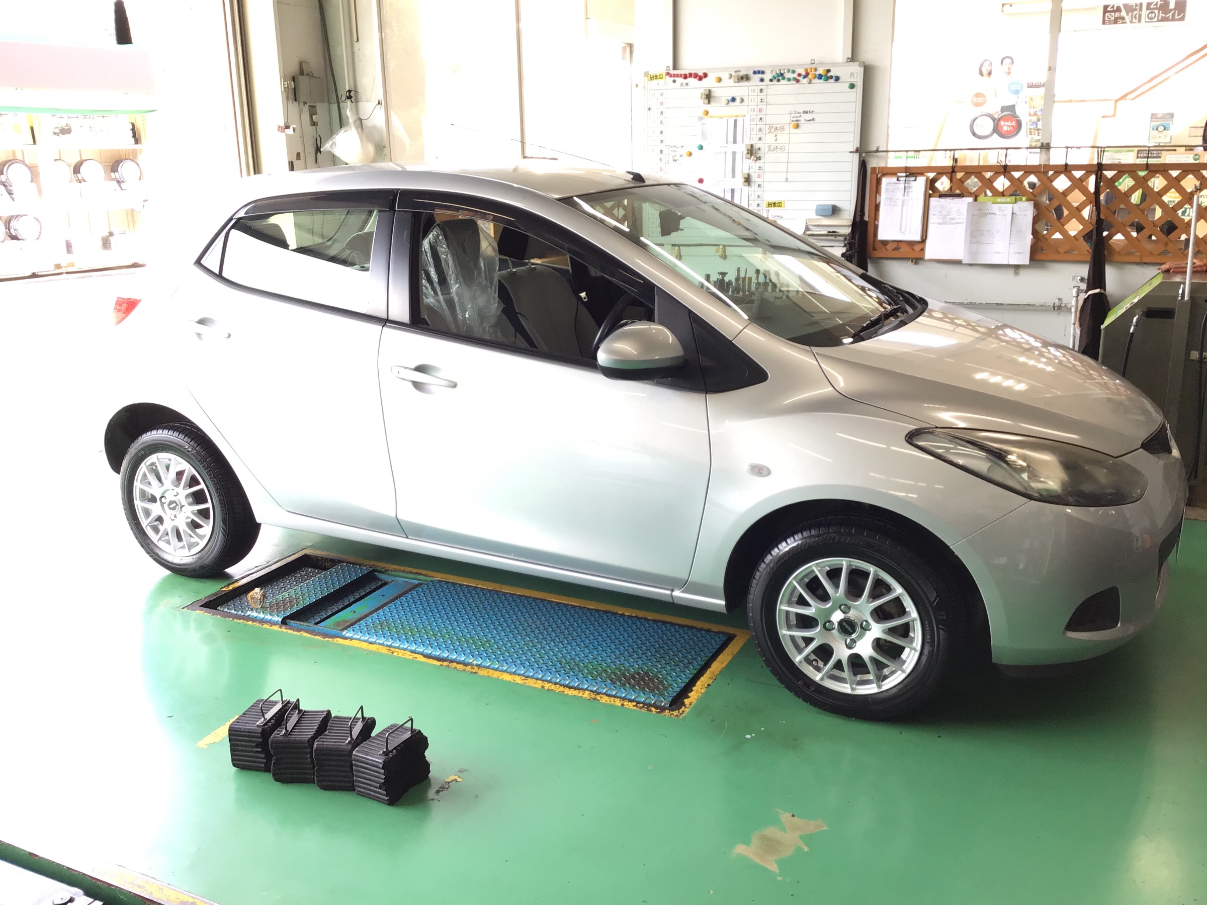 昨日マツダのデミオでタイヤ&ホイール交換作業を行いました!