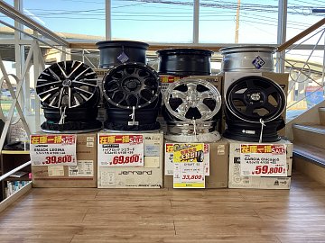 今回は激安数量限定アウトレットホイールをご紹介! 幅広いカテゴリーの車種の在庫がございますのでお気軽にお問い合わせください。 有名なホイールメーカー多数お取り扱いございますので、 ドレスアップを検討中の方は是非お越しください!