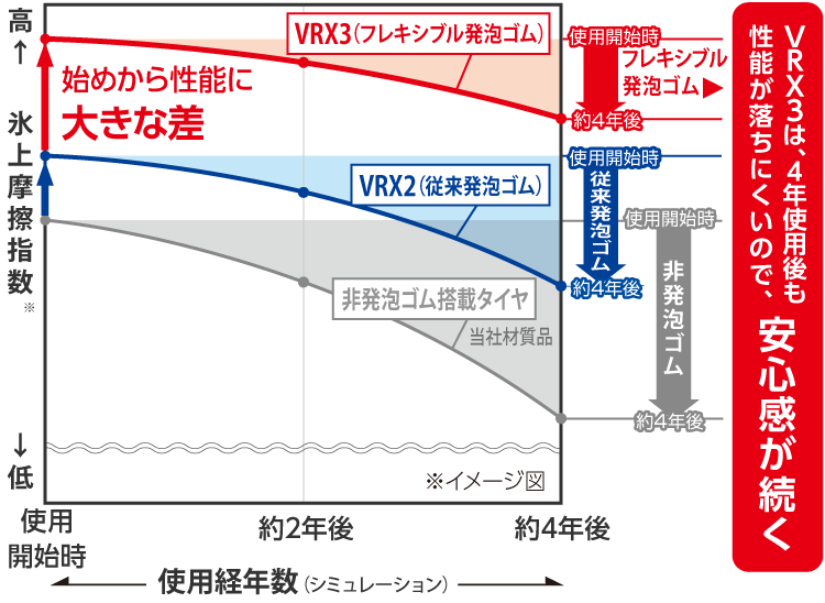 VRX3では「フレキシブル発泡ゴム」となり、より性能が低下しづらくなりました。