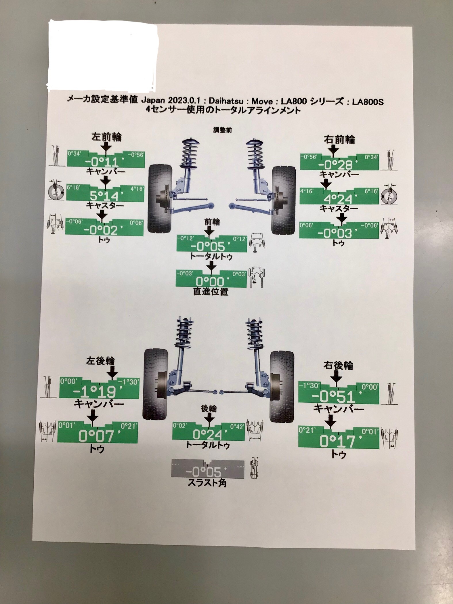 当店ではアライメント(お車のタイヤの角度等)確認、調整ができます。