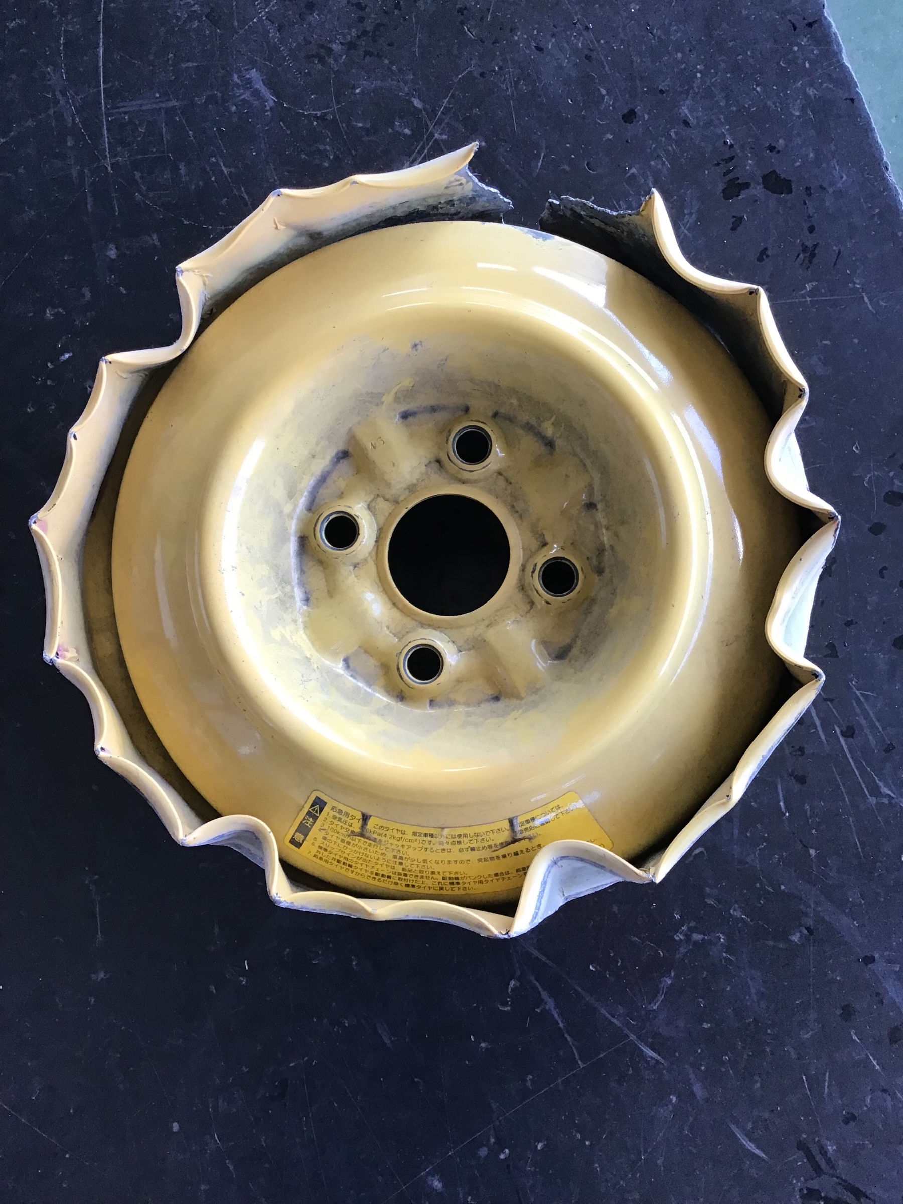 今回は当店にご来店のお客様でスペアタイヤに空気が入っていなくて、、、それでも移動しなくてはいけない状態になりスペアタイヤ、スペアホイールが両方とも再度使用不可の状態に、、、
