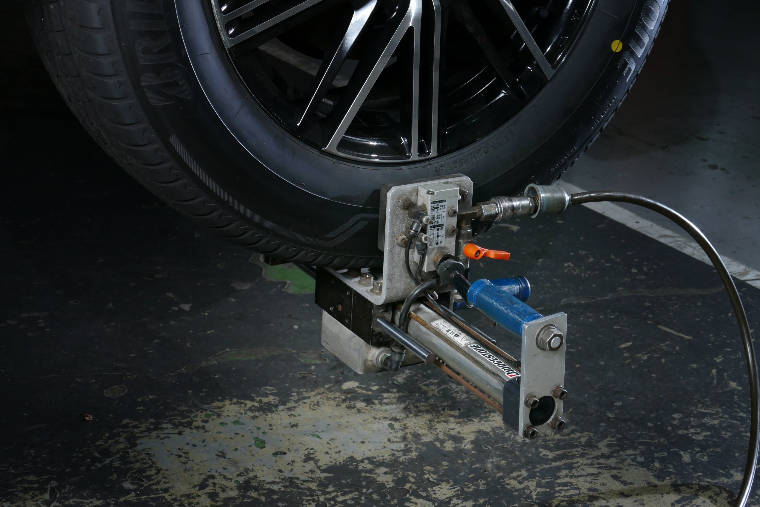ブリヂストンの独自開発技術「センターフィット・サービス」は、専用の「B-SYSTEMセンタリングマシン」をタイヤに装着し、特殊な振動を与えながらボルトを締め付けます。これによって全体が均等に締めつけられ、正確にタイヤの中心を車軸へ取り付けることができ、より高い精度のバランス調整とタイヤ装着を実現する技術です。