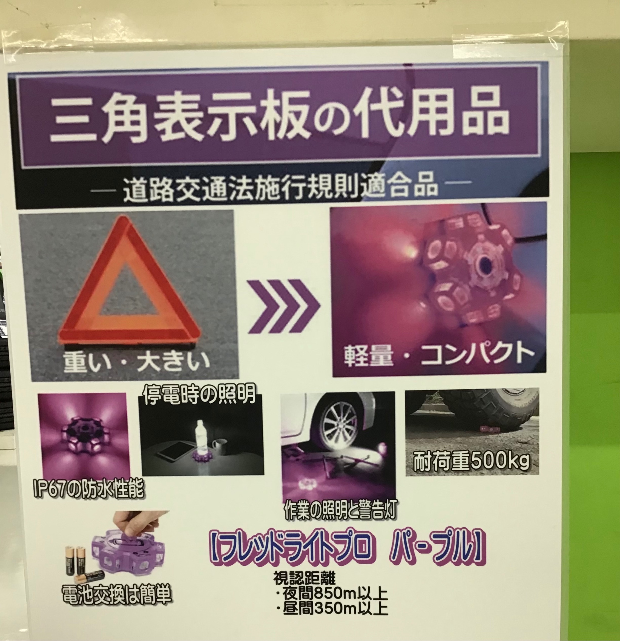 WAGAN TECH ポスト 2025年4月19日 こんにちは^ ^ 栃木県大田原市のタイヤ館大田原店です 今回、紹介する商品は いざっていう時に役に立つ WAGAN TECH FRED LIGHT PRO 『PURPLE』 三角表示板の代用品で軽量、コンパクトですごく明るい光り方をします。 紫に光るのですが何パターンか点滅するので使用用途に合わせられます。 サンプル展示もしているので店頭にてご確認ください^ ^ 担当:スタッフH