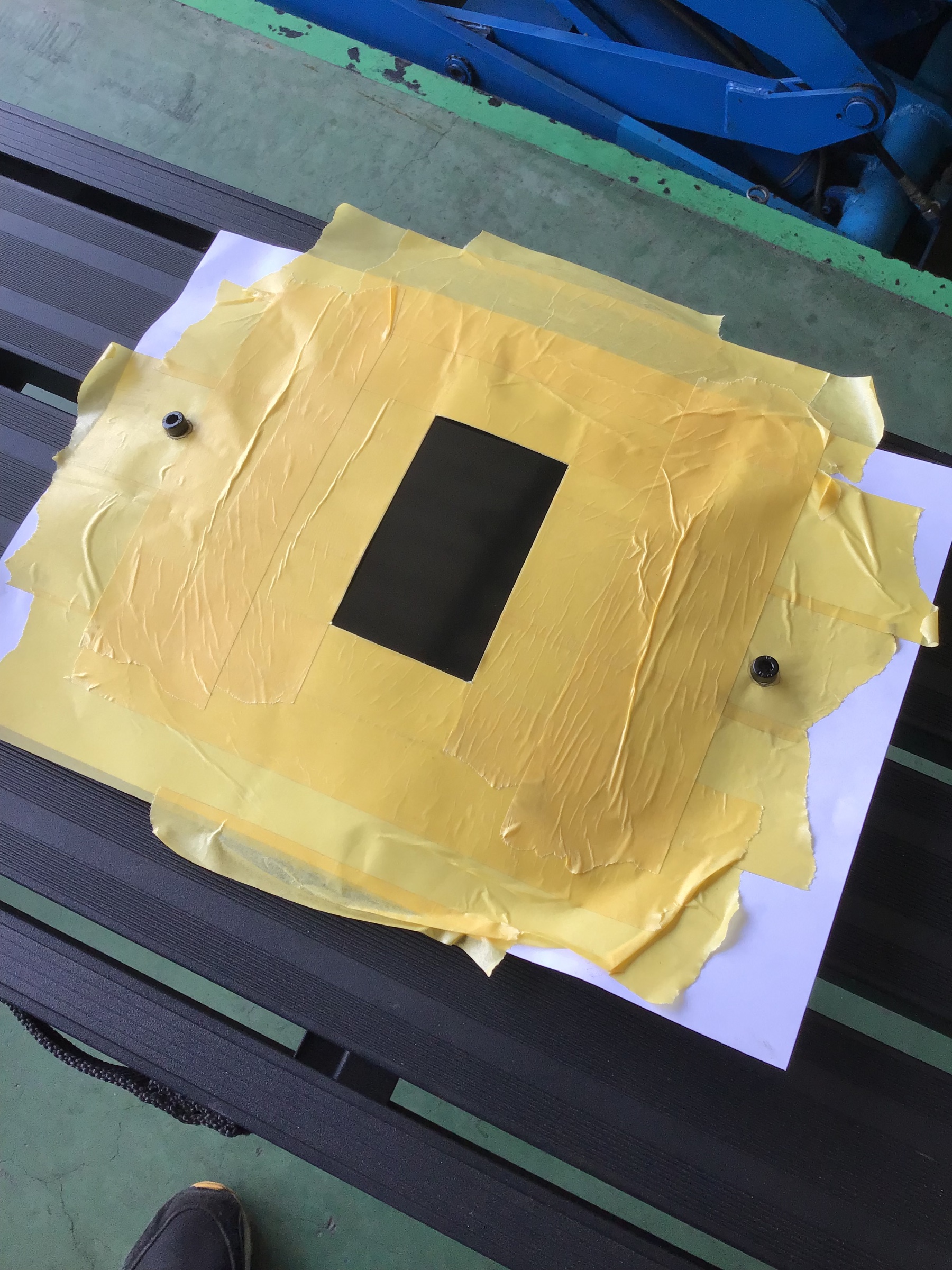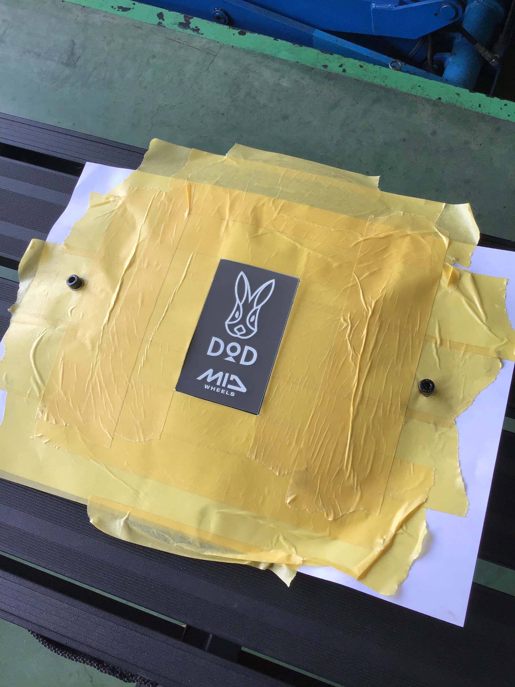 アウトドアブランドの『DOD』のステッカーが同封してあるので4枚とも同じように貼るために位置決め
