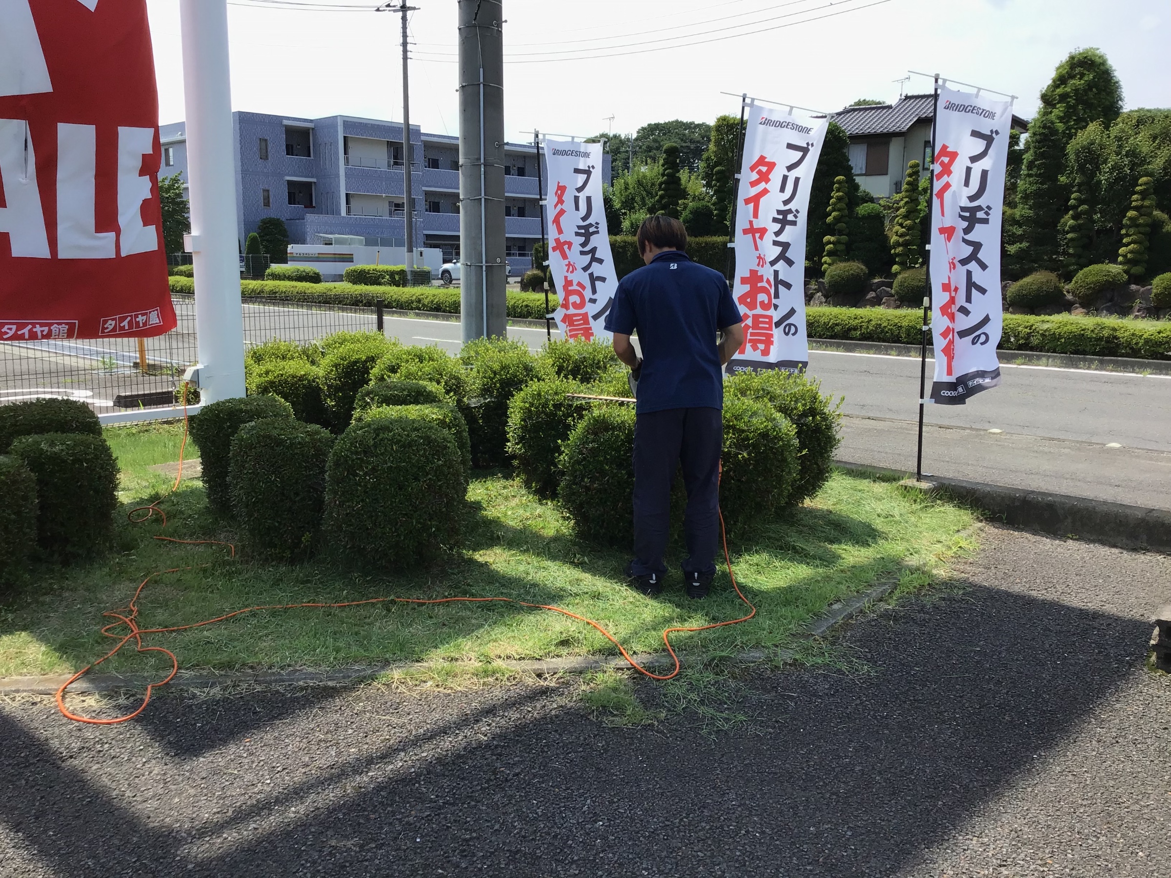 店頭の芝刈り、植木の剪定 ポスト 2025年7月2日 こんにちは^ ^ 栃木県大田原市のタイヤ館大田原店です♪ 暑くなってくると草木は元気にすくすく育ちますね〜 店頭、ロードサイドのがすごい事になってきているので空いてる時間を見つけて芝刈りとツツジの剪定をしてもらいました^ ^ この時期は毎月やらないとすぐにボサボサになってしまいます 水分補給をしながら熱中症に気をつけてやっていますよ^ ^ 皆様もしっかり水分補給したりして暑い日を乗り切りましょう♪ 担当:スタッフ
