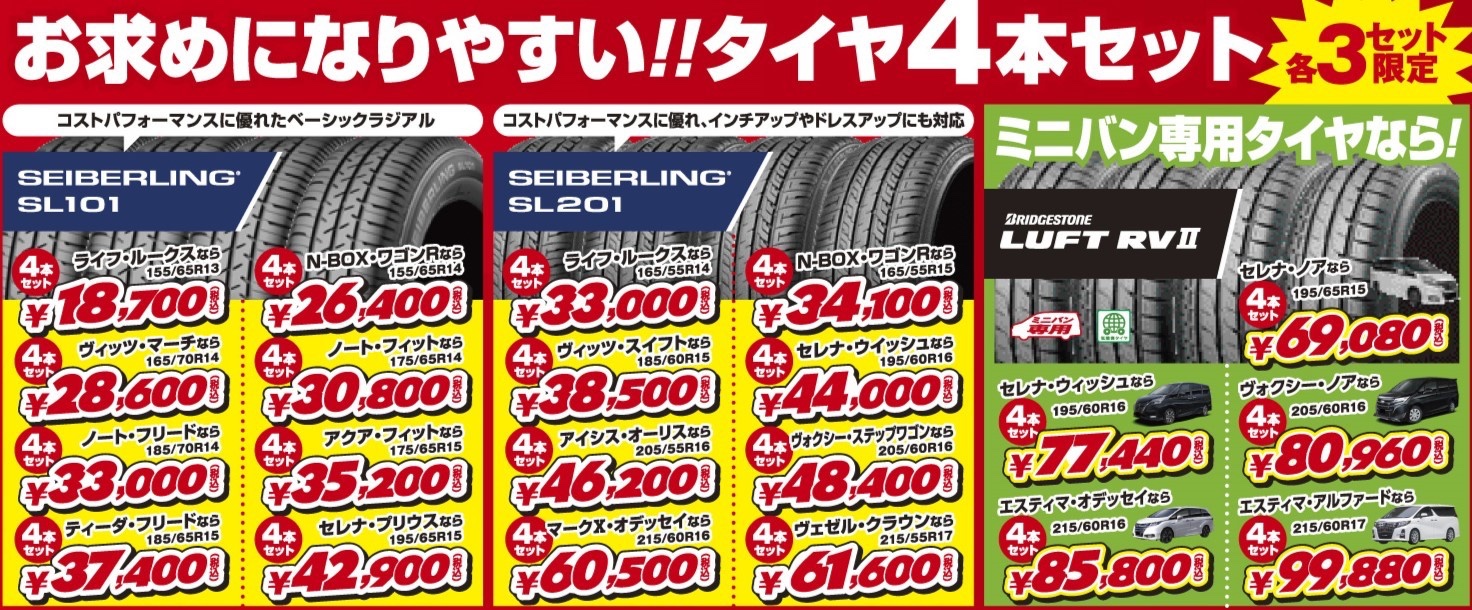 8月はお出掛けシーズンになりますがお盆の頃はメーカーさんがお休みになる事がありタイヤや部品、用品が入荷ができないことがあります。