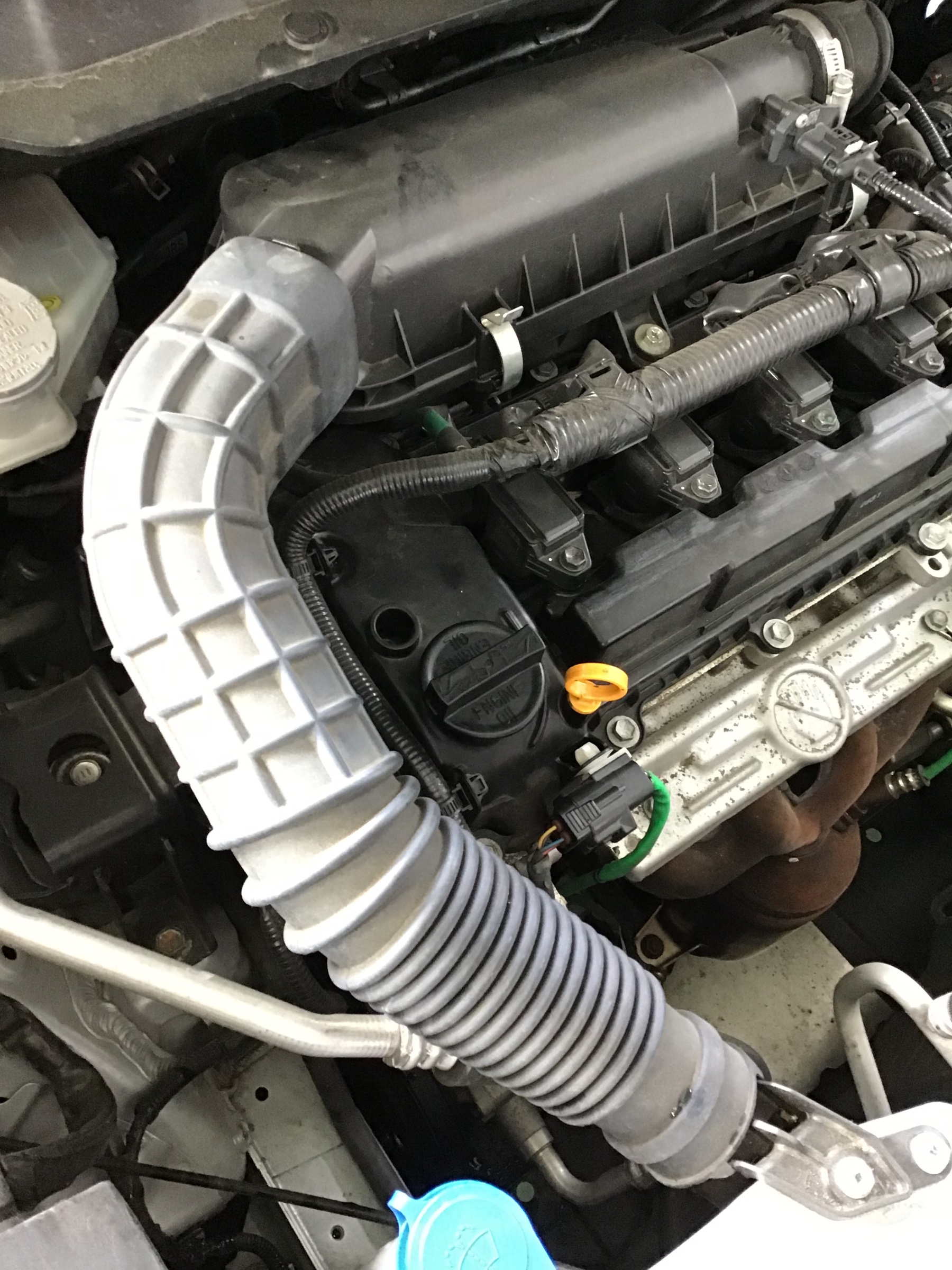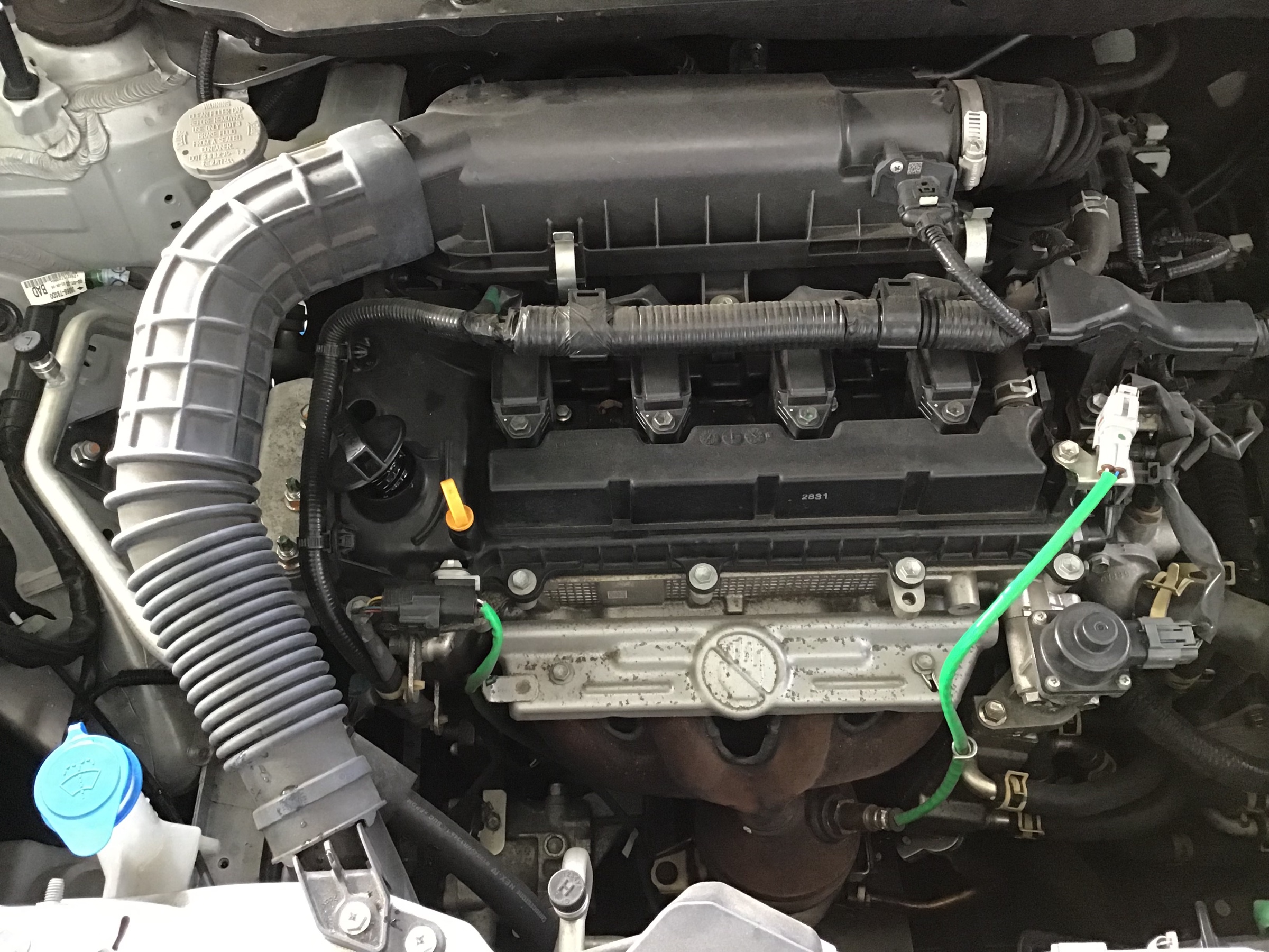 ボンネットを開けてオイルゲージとオイルキャップの場所確認