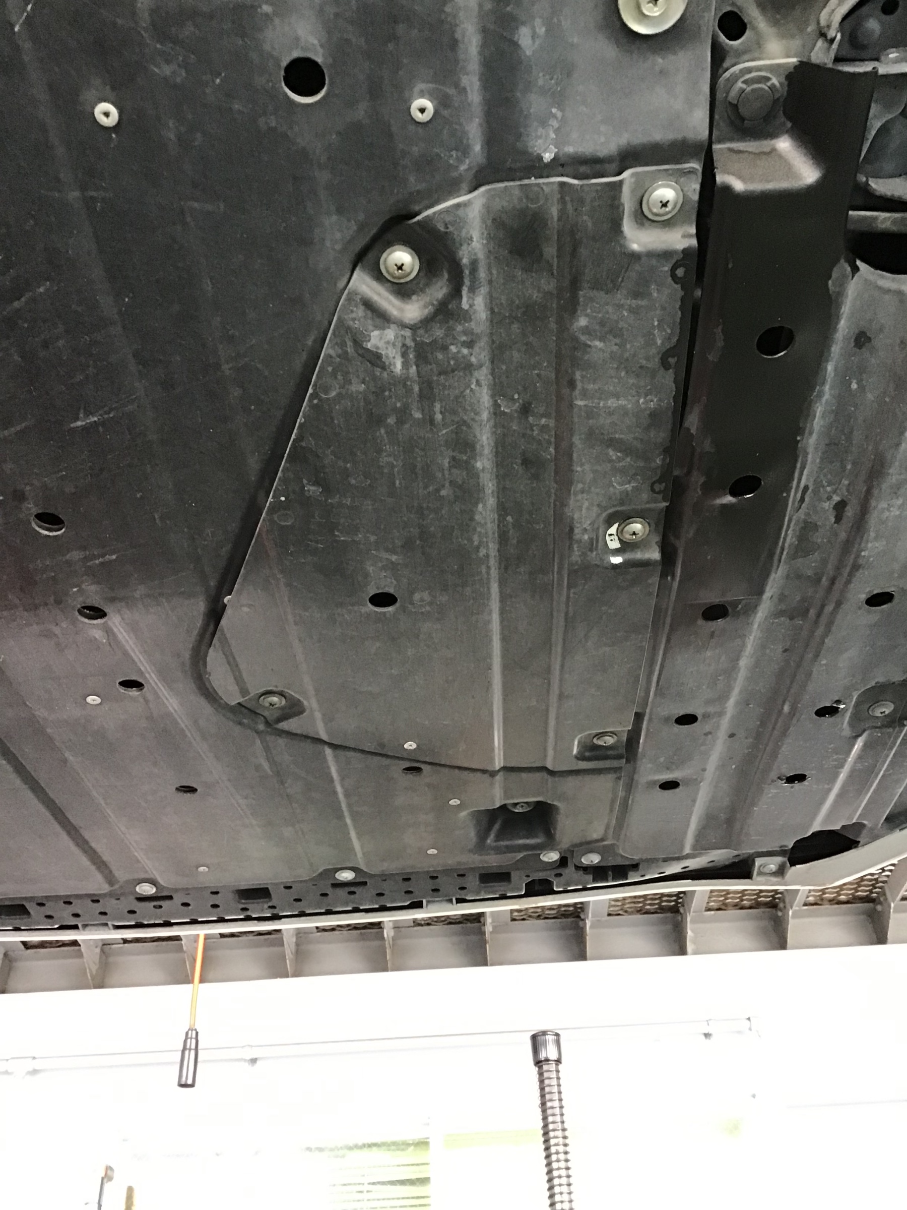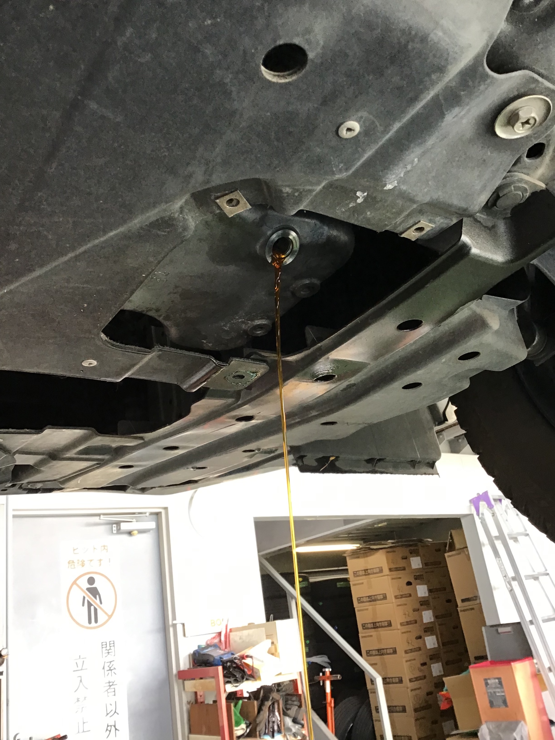 車両を上げてオイルを抜く前にアンダーカバーが付いています