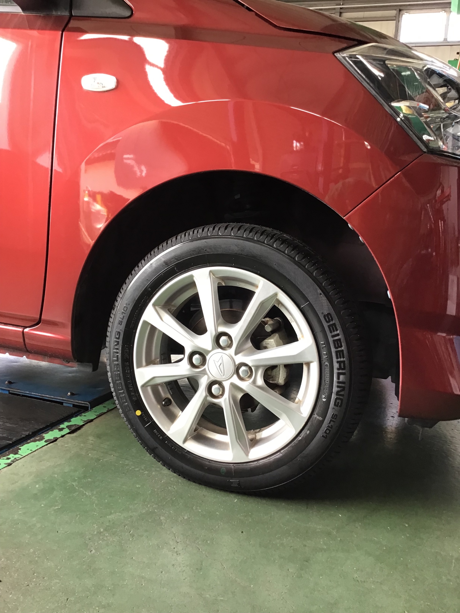 ダイハツ ミライース タイヤ交換 ポスト 2026年4月29日 こんにちは♪ 栃木県大田原市のタイヤ館大田原店です こちらの車両の交換になります 年数経過にて交換になります このようにヒビがかなり出てきていますね ヒビがあるのはゴムが硬くなってきている証拠になります 今回装着するのは セイバーリング SL101 155/65R14になります これで安心して車をご利用できますね^_^ タイヤでお困りの際は是非当店スタッフまでお気軽にご相談ください 担当:スタッフH