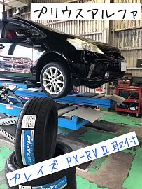 プリウスアルファタイヤ交換アライメント作業