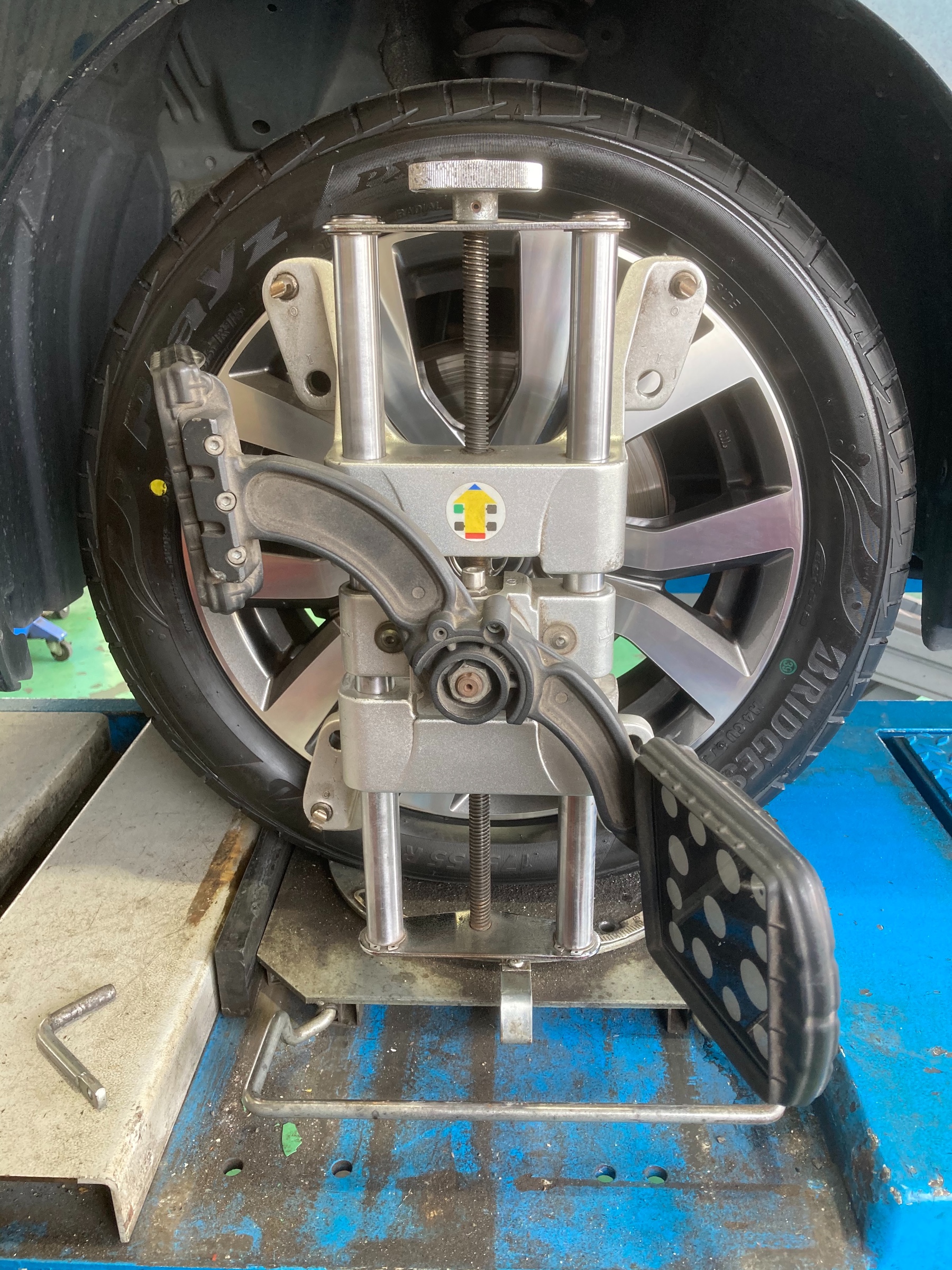 また、かなり片減り(外減り)している状況でお客様も気をしているとの事だったので、アライメント作業もさせて頂きましたヽ(‘ ∇‘ )ノ