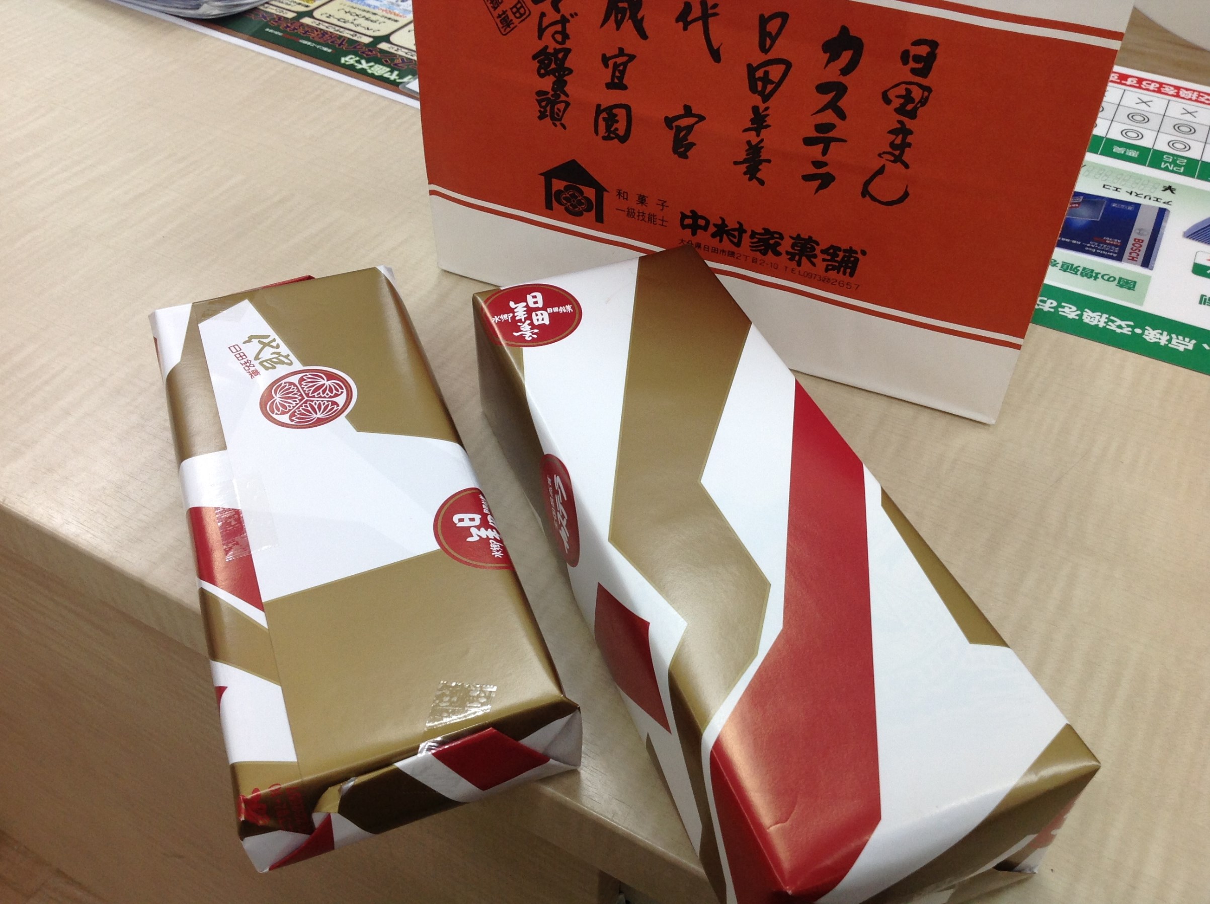 お土産PartⅡ ポスト 2017年5月21日 こんばんは、またまた日記登場です。 今日もお店も大盛況でたくさんの方々にきていただきました。 その中でまたお土産をいただきまして、大変ありがとうございます! 日田から臼杵に帰る途中に寄ってくれたようで、 お土産を持ってくるためだけに店に立ち寄ってくれて感謝感激であります! カステラ美味しくいただきま~す(涙) 担当:森山