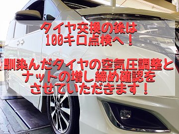 こんにちは☆ 大分市下郡北にあるタイヤ館大分店です(*^^*) タイヤ館では、タイヤ交換の皆様に 1週間または100キロ走行後のタイミングで 一度ご来店をお願いしております! 新品のタイヤが馴染んでくると どうしても空気圧の変動が起きる為 その微調整とナットの緩みがないかの再確認をさせてい...