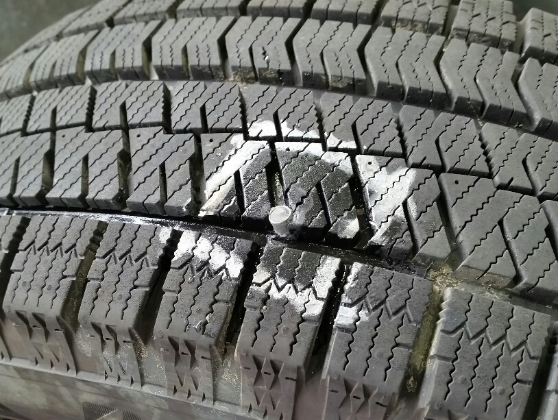 ↓まずは修理剤の大きさにタイヤ表面を削ります。
