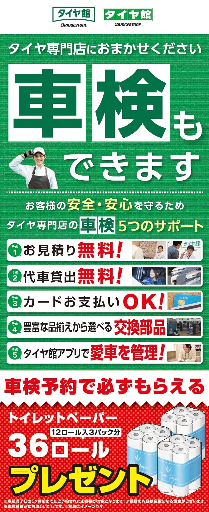 車検予約でトイレットペーパー36ロールが