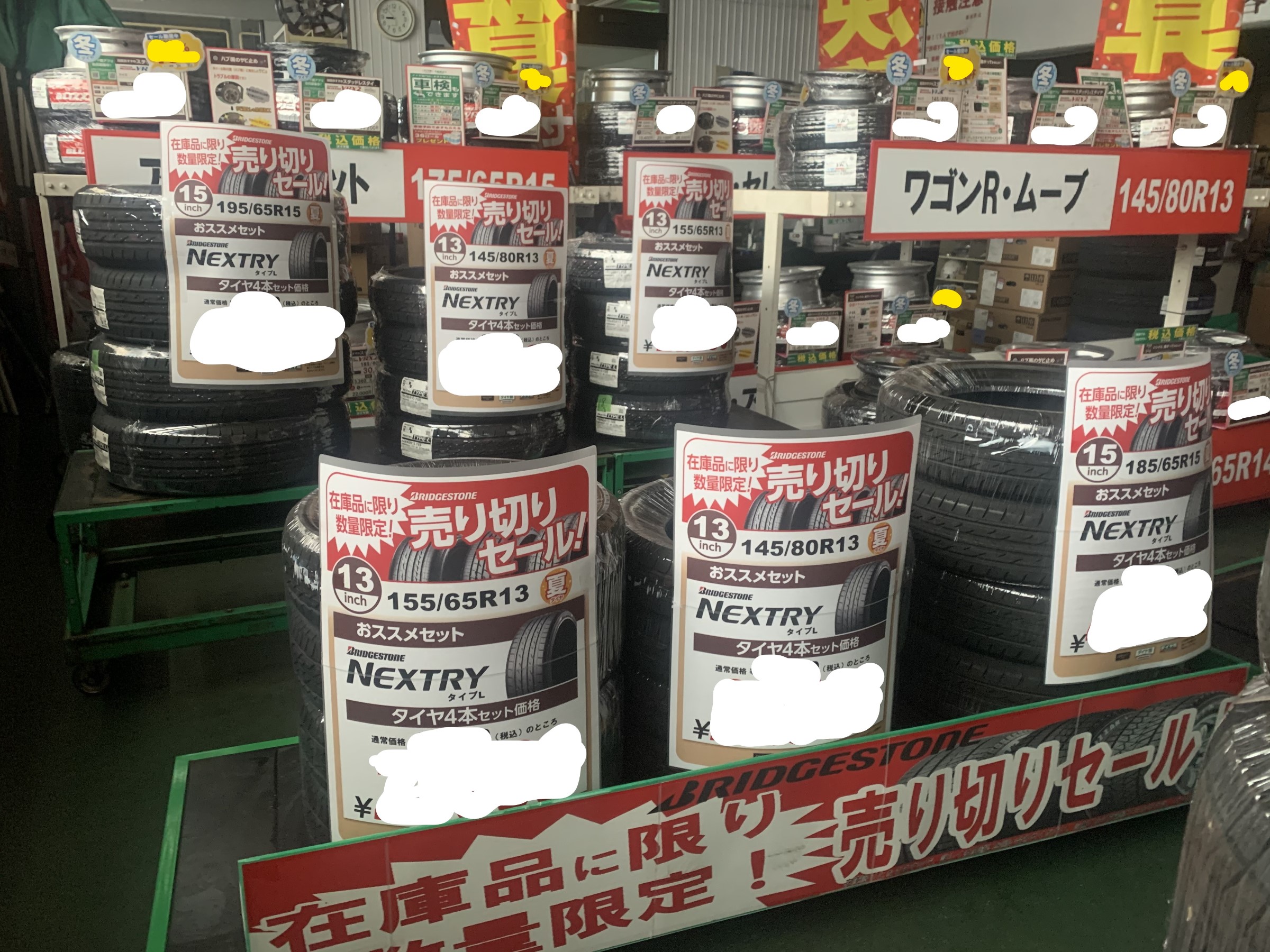 当店外の在庫限り売り切りコーナーにお買い得夏タイヤコーナー設置しました。
