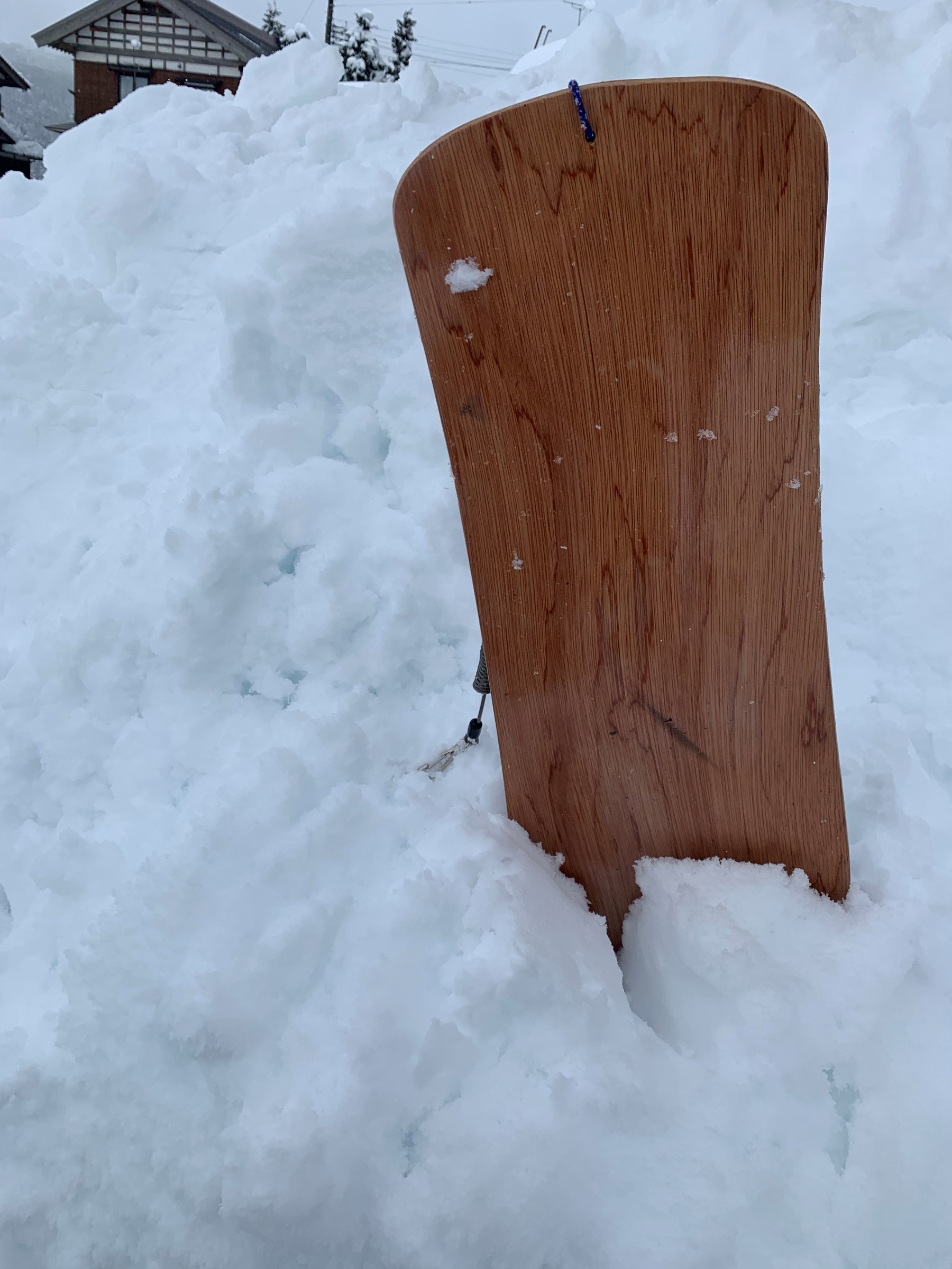写真はお休み中、自宅の雪下ろしに飽きて遊んでいた雪板です。。