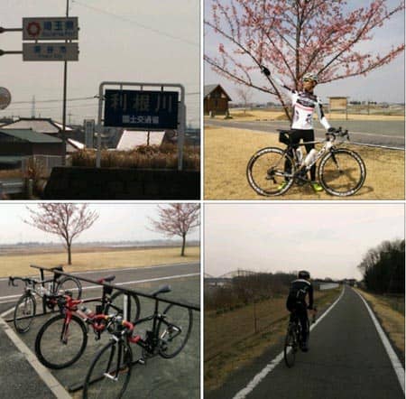 埼玉県に入るとさすがに春本番の天気で、河川敷に植えてある桜が見頃!!