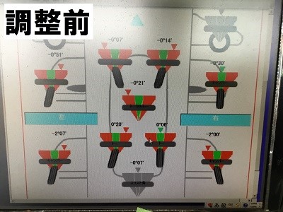ローダウンしただけあって前後の【トー】にバラツキ有。