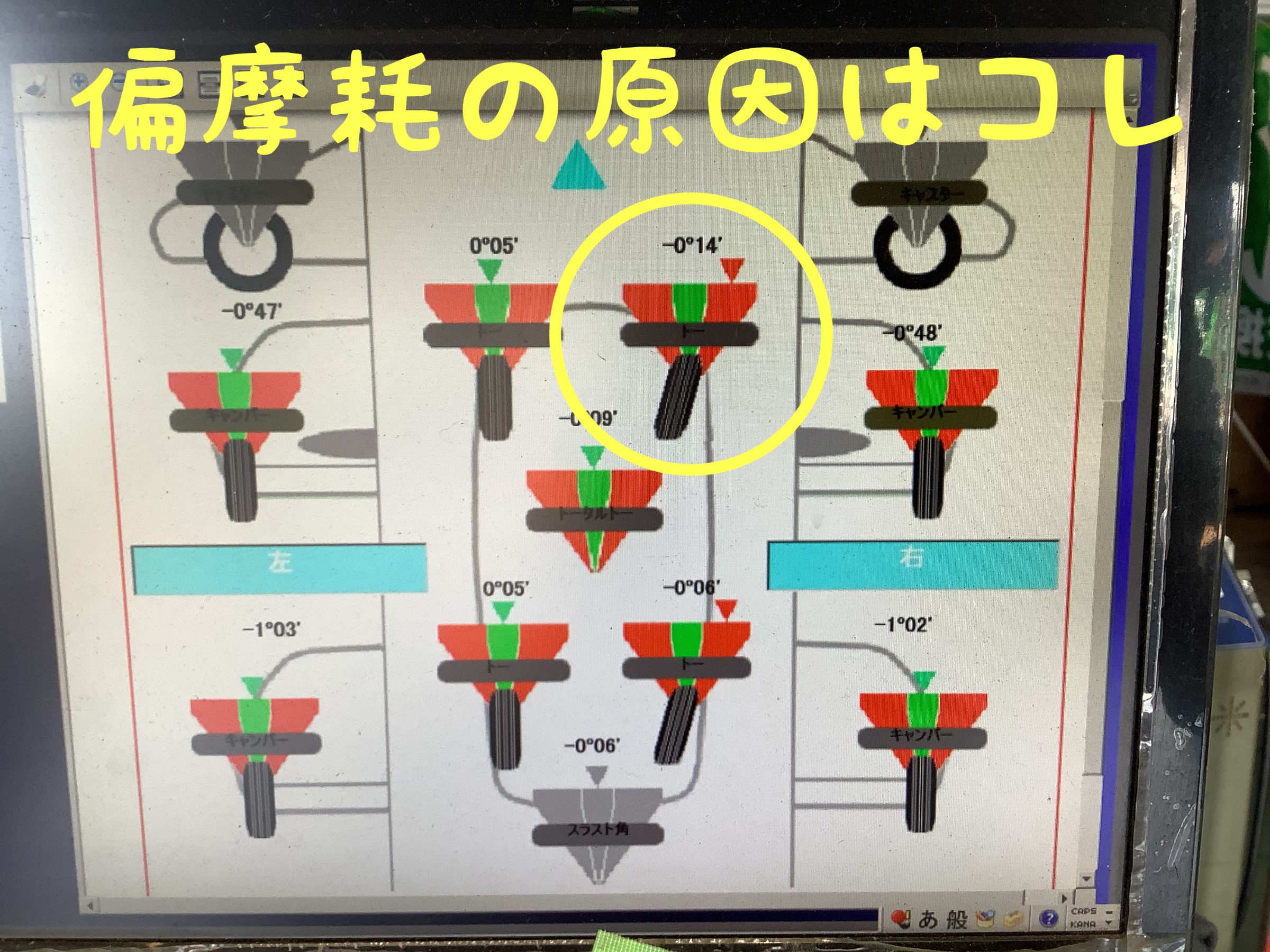 タイヤの内側が減る原因が分かりました。