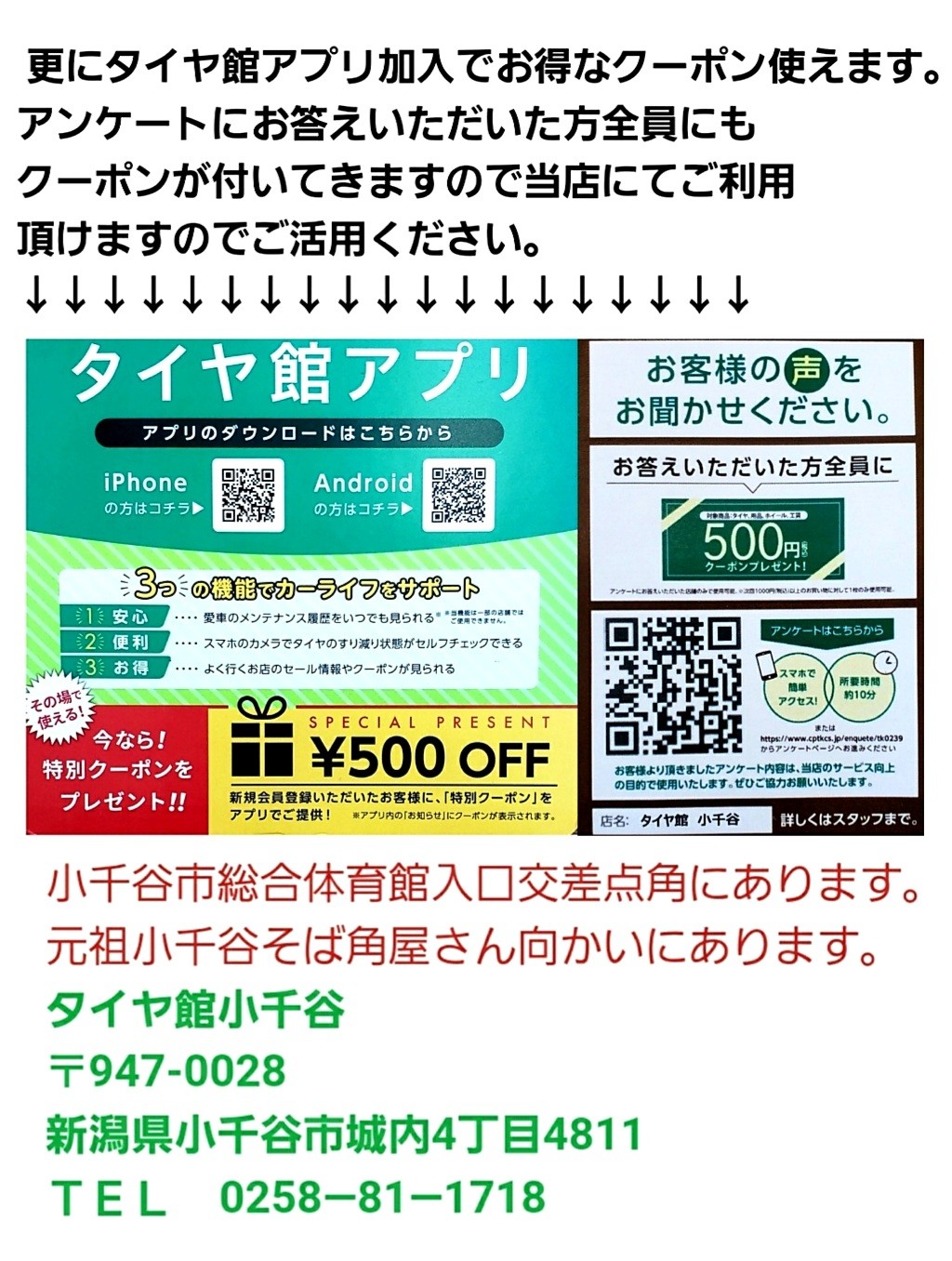#タイヤ館小千谷 #アプリ #クーポン券