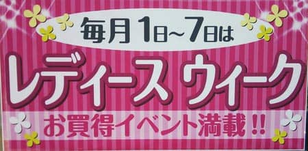 当店では、『 毎月1日~7日 』 は 『 レディースウィーク 』