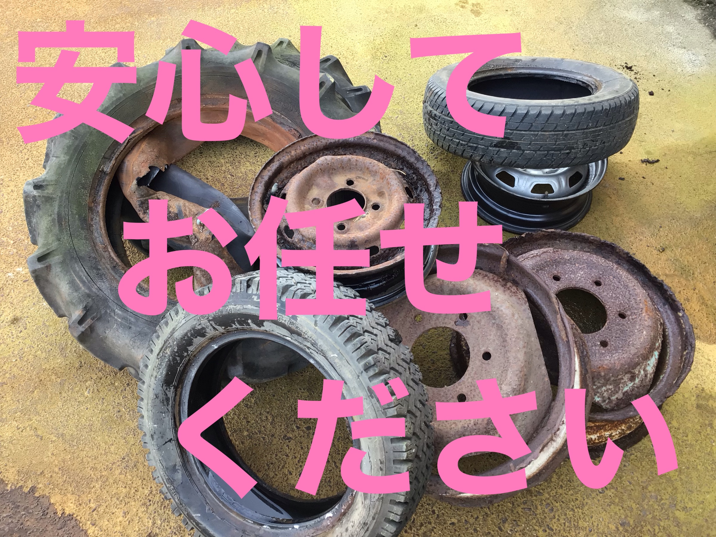 #タイヤ#処分#処理#廃タイヤ#ホイール付き#産業廃棄物#小千谷#トラクター#一輪車#自転車#自動車#長岡#