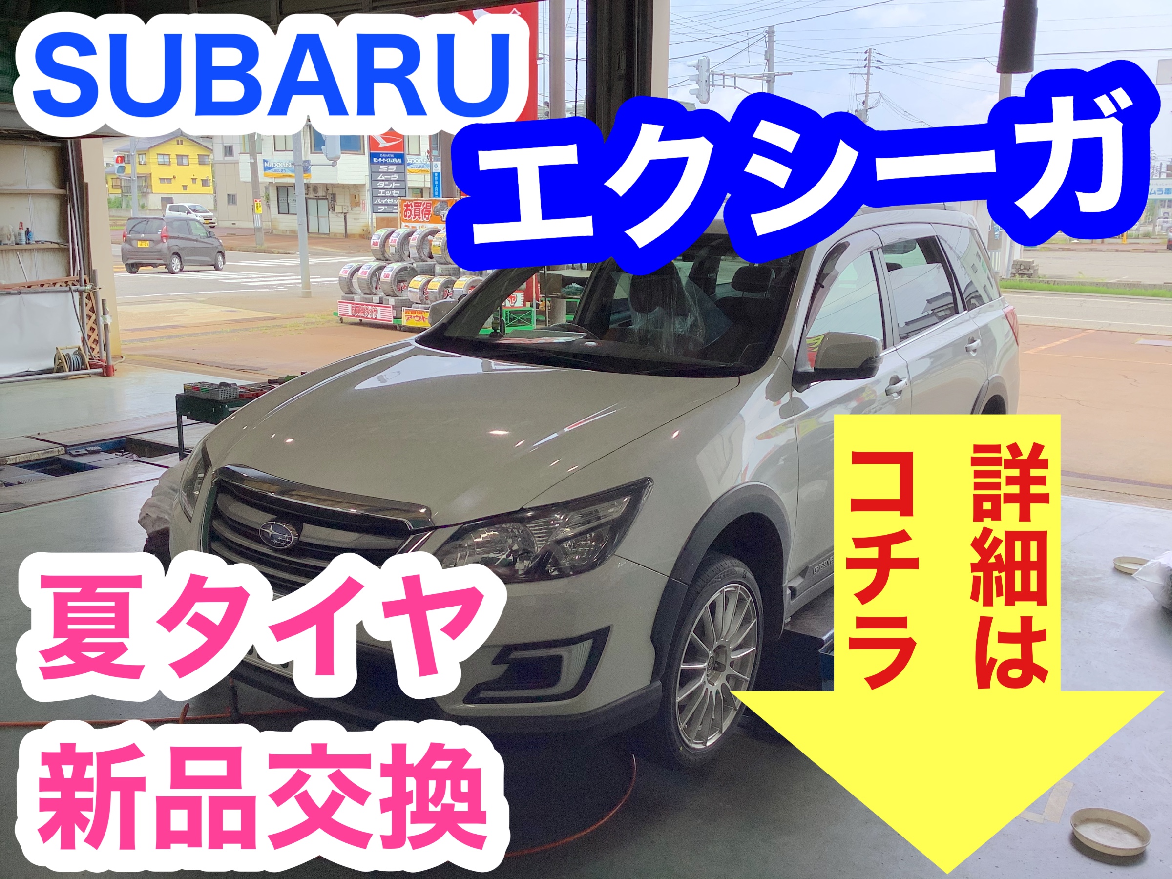 【エクシーガ】タイヤ交換&アライメント ポスト 2022年8月1日 みなさんこんにちは タイヤ館小千谷木村です^ ^ 最近は気温も高く熱中症の危険も… そんな中ですが水分補給をしながら 今日も元気に営業してます♪ さて、本日は夏タイヤの新品交換作業を ご紹介します!! タイヤを外したらもちろん【ハブのサビ止め】 今回はサイズが18インチという事で・・ お手頃だけどブリヂストン品質で当店でも 人気のタイヤ【セイバーリング】で交換しました♪ さくっと組み替えて、バランスをとり・・ タイヤワックスで側面をピカピカに☆ 最後はもちのろん! アライメントで終了でっす(^^♪ 内減り傾向していたので、これで タイヤ寿命もアップです!! #夏タイヤ #サマータイヤ #お買得タイヤ #ブリヂストン #BS #フリードリンク #キッズスペース #4輪アライメント #作業予約 カテゴリ:タイヤ関連 コーティング関連 タイヤ関連 担当:木村