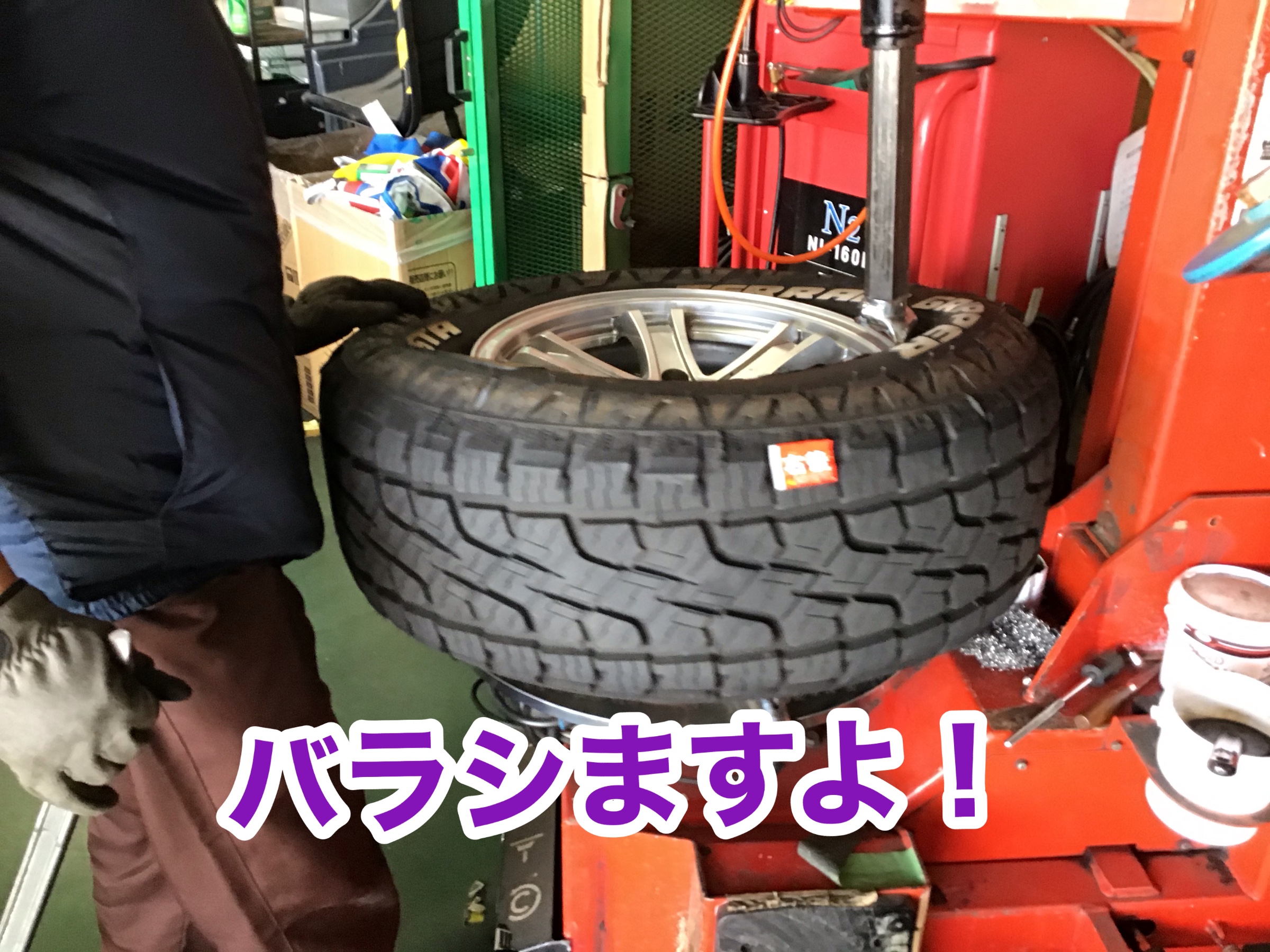 ホイールからタイヤをバラシます!