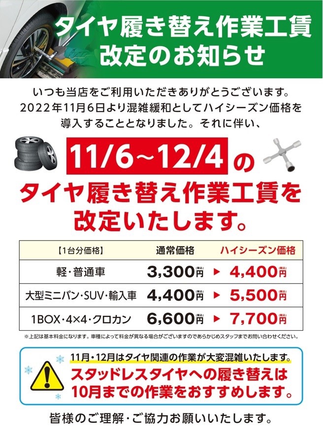 ♦︎♦︎♦︎タイヤ館小千谷から重要なお知らせ♦︎♦︎♦︎