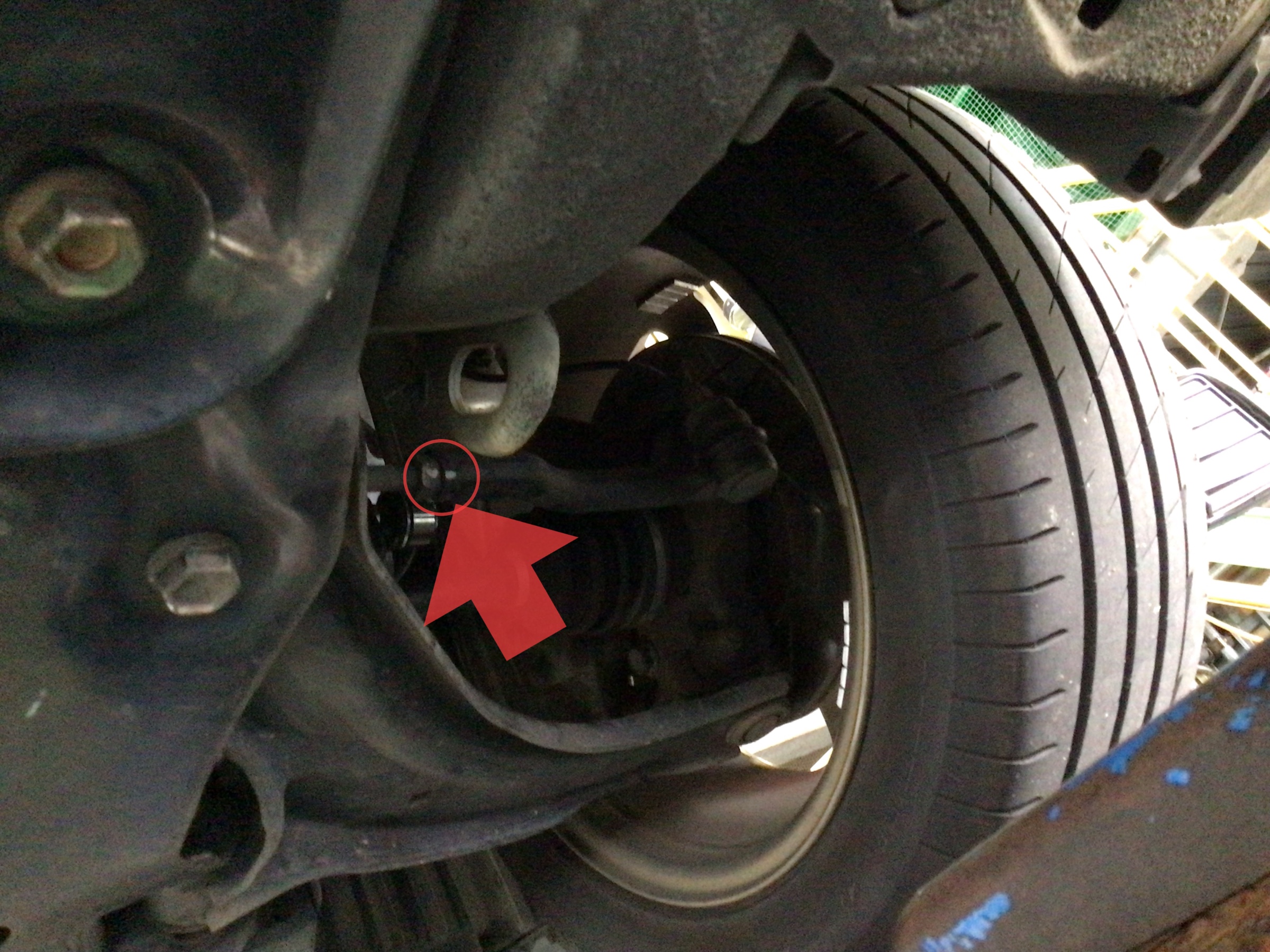 右前のタイヤが少しトーイン気味ですね。