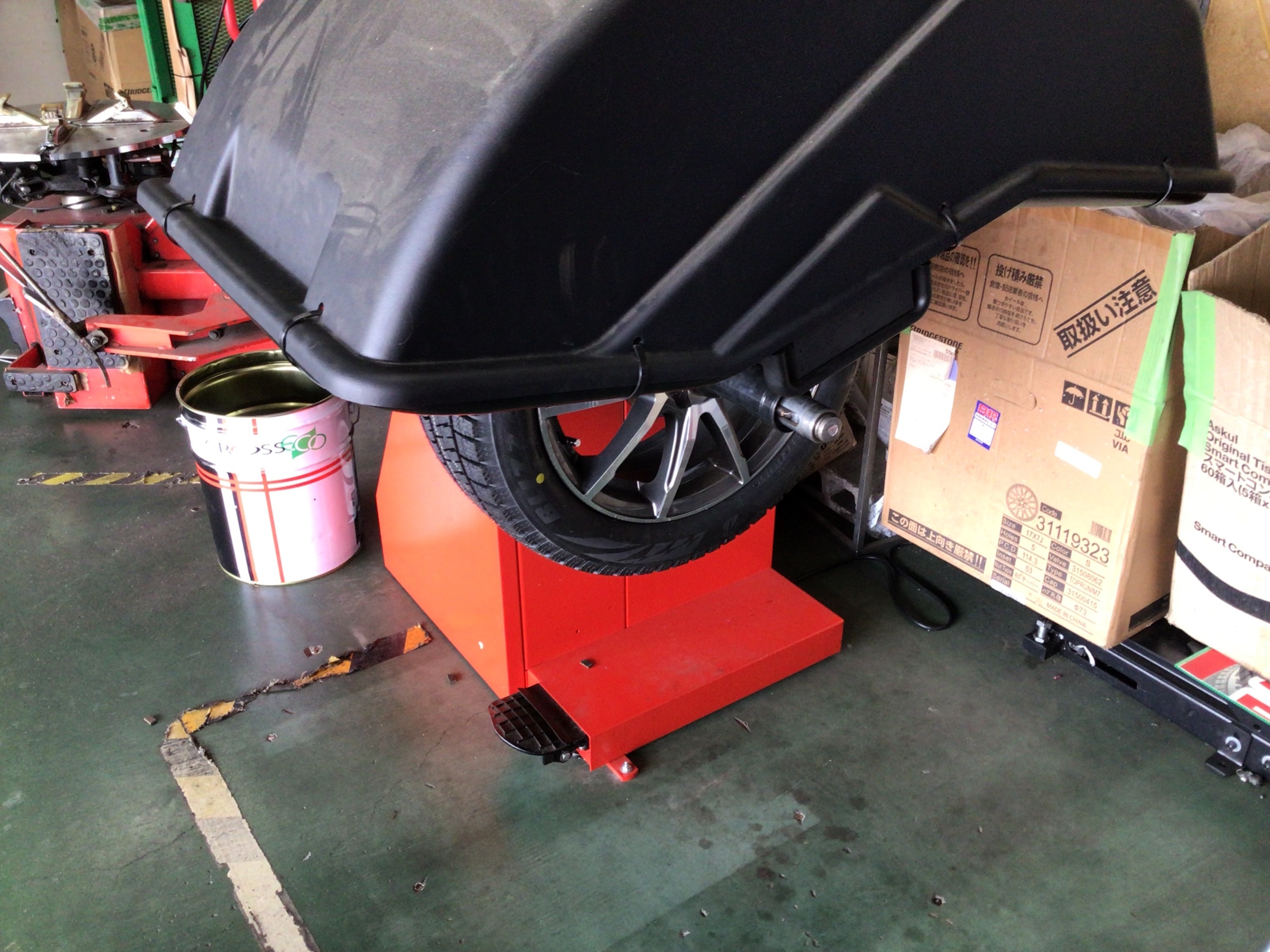 ホイールバランサーにかけ