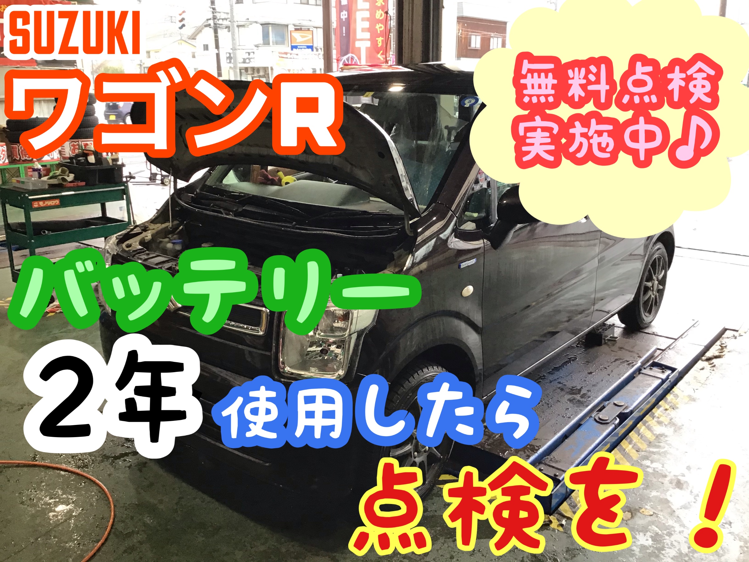 朝晩の冷え込みでバッテリー上り急増中!!【スズキ ワゴンR】無料点検実施中(*´▽`*)