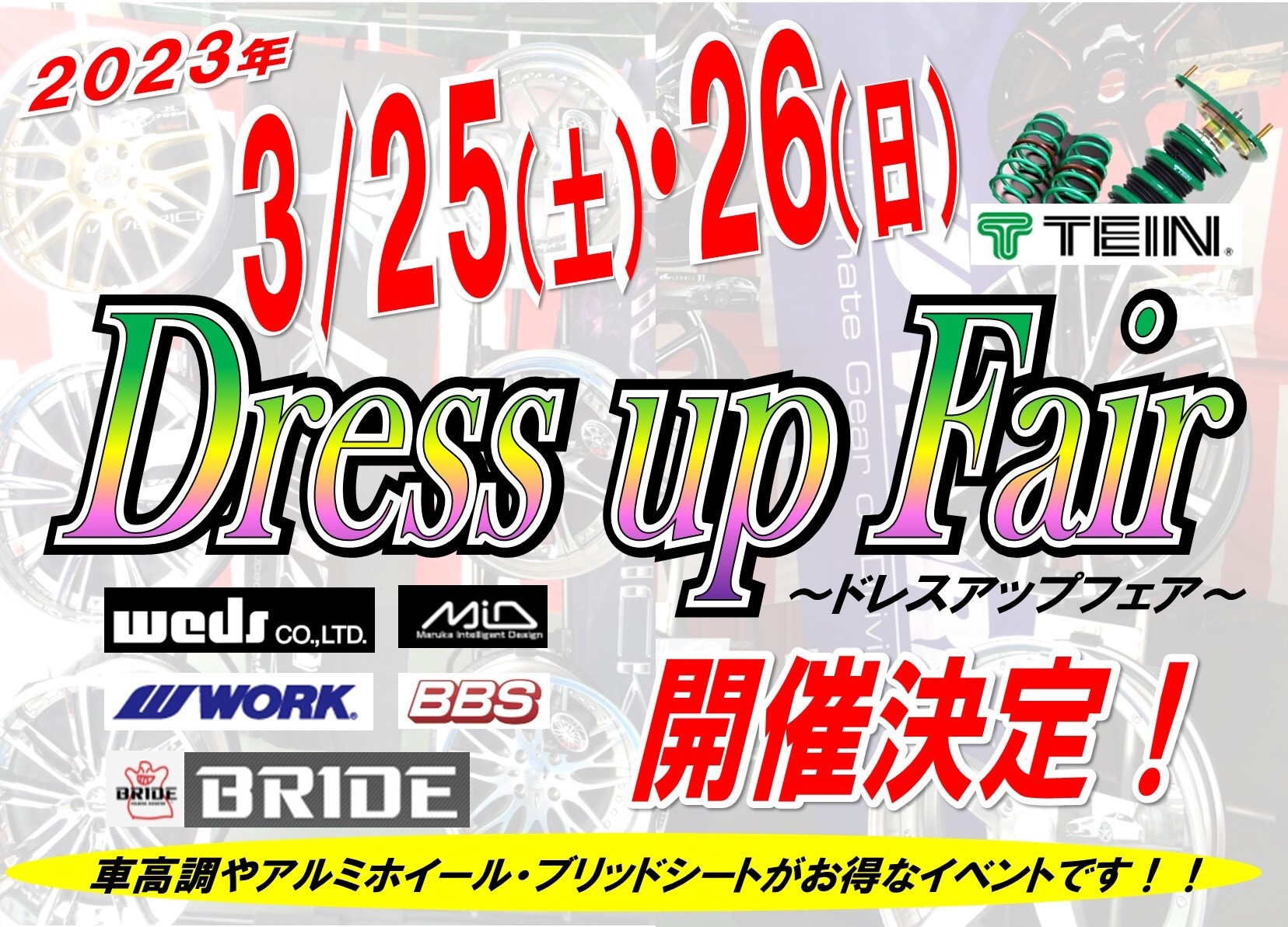 #タイヤ館小千谷#小千谷#タイヤ#ホイール#車高調#バネ#インチアップ#ドレスアップフェア#Dress up Fair#ブリッド#BRIDE#試座#ストラディア#イベント#オイル#バッテリー#ワイパー#エアコンフィルター