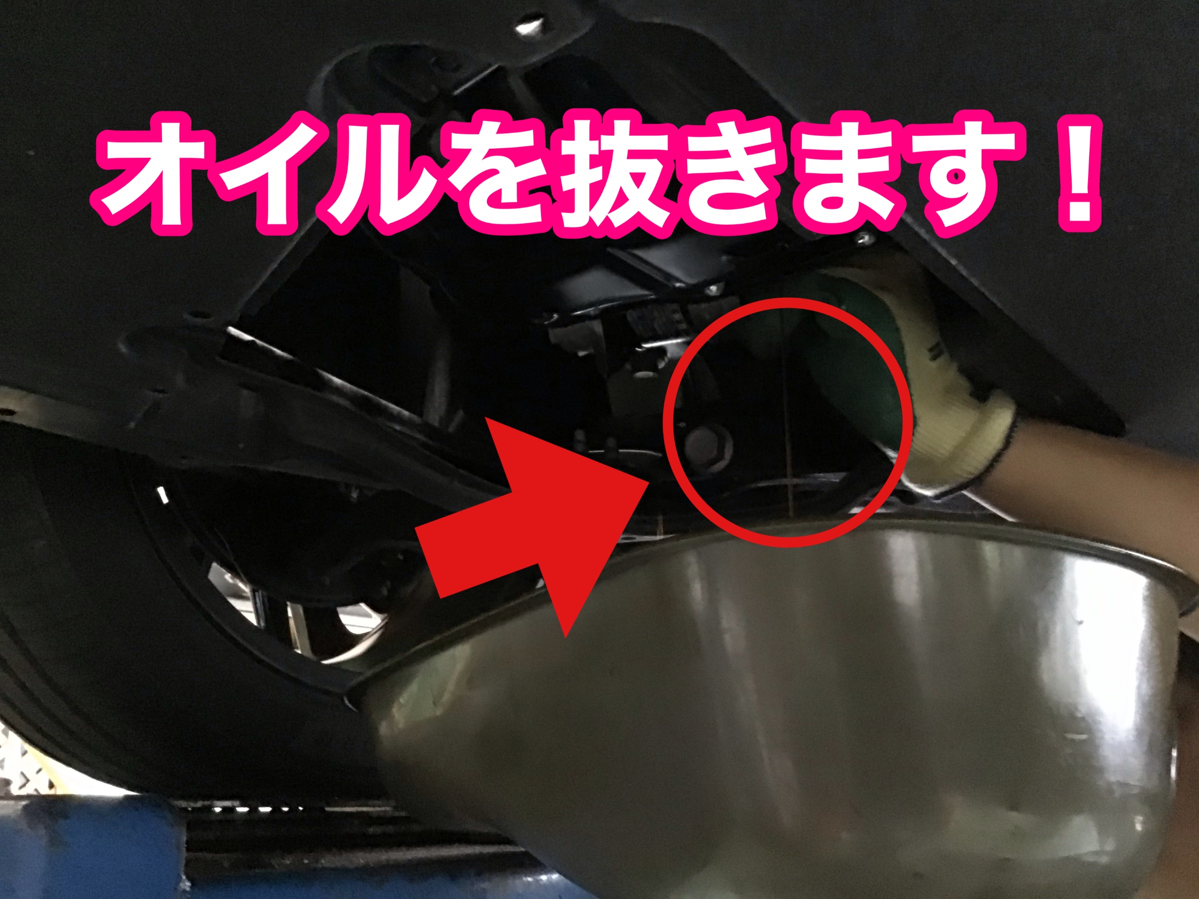 下からオイルを抜きますよ!