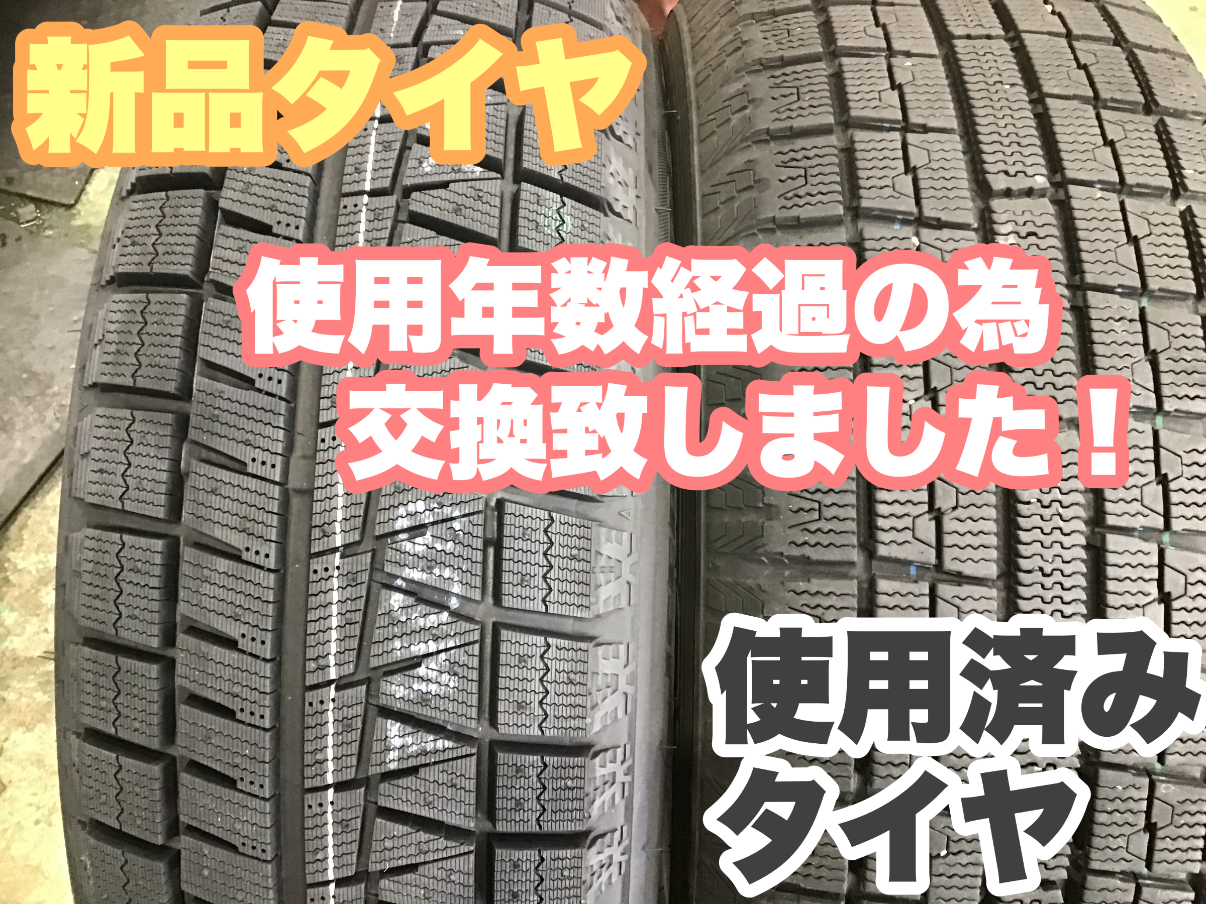 交換前のスタッドレスタイヤは2015年製7年経過で