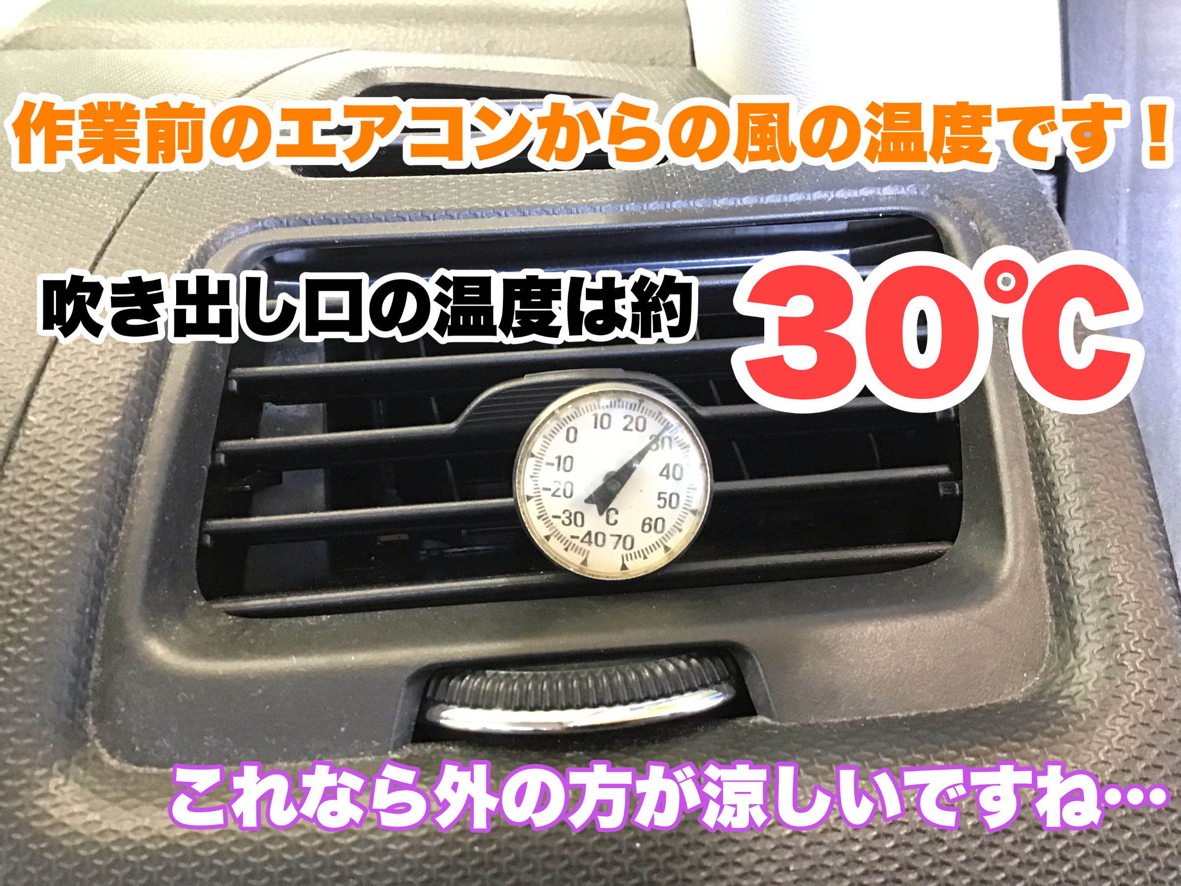 吹き出し口の温度を測ると約30℃( ゚д゚)これは熱い!