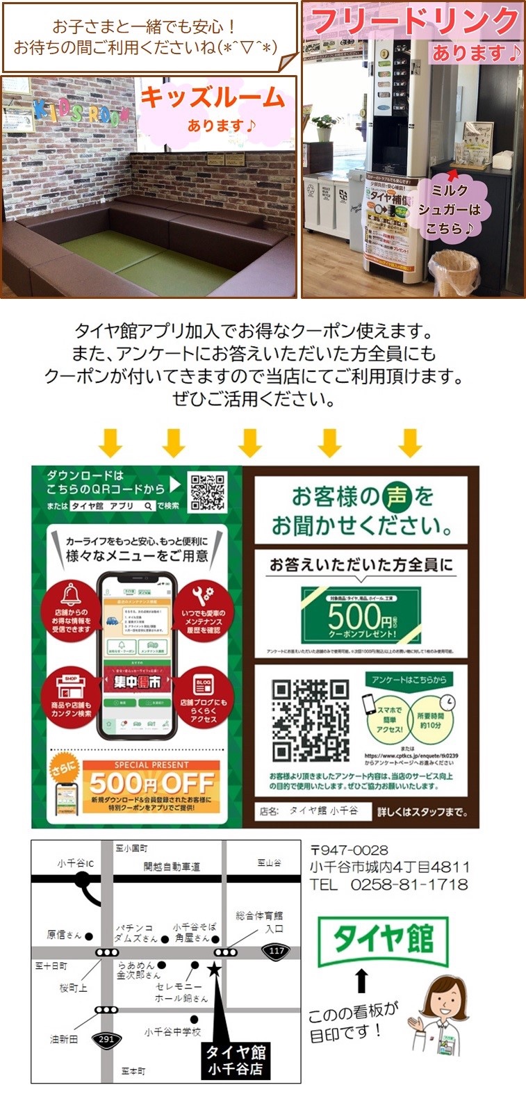 #タイヤ館小千谷#オイル交換#バッテリー交換#タイヤ交換#メンテナンス#スマホ決済#簡単#安い#お得#キッズコーナー#キッズスペース#キッズルーム#子育て#育児#フリードリンク#待合室#子ども連れ#お子様と一緒#予約#アプリ#クーポン#スタッドレスタイヤ#夏タイヤ#在庫一掃#サブスク