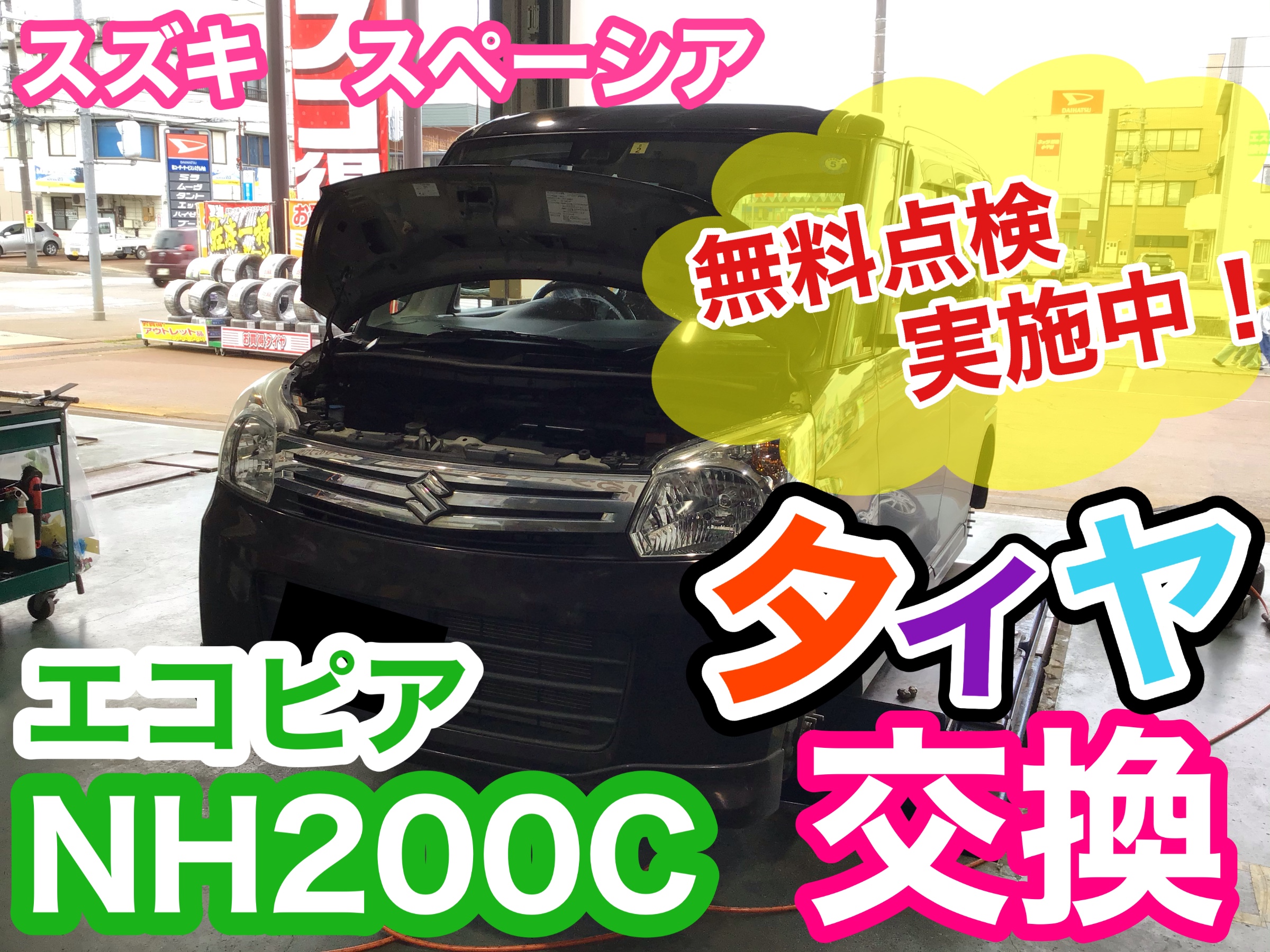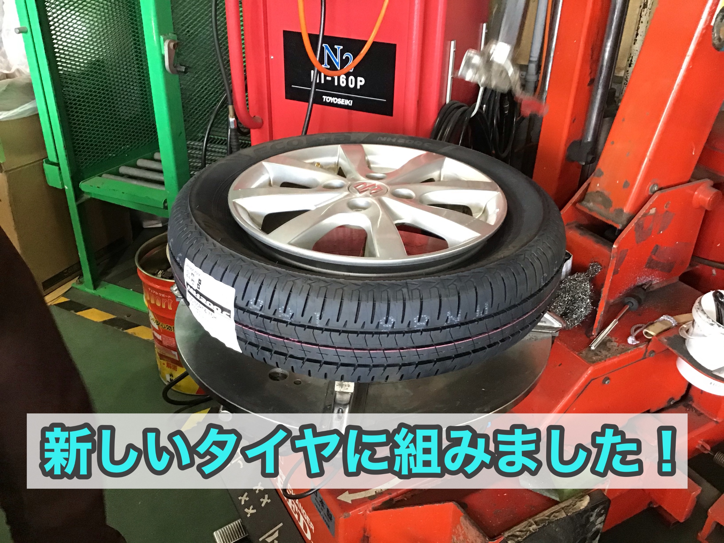 タイヤ点検無料です!お出かけ前に気づけて良かった!スズキ スペーシアタイヤ交換(*^▽^*)